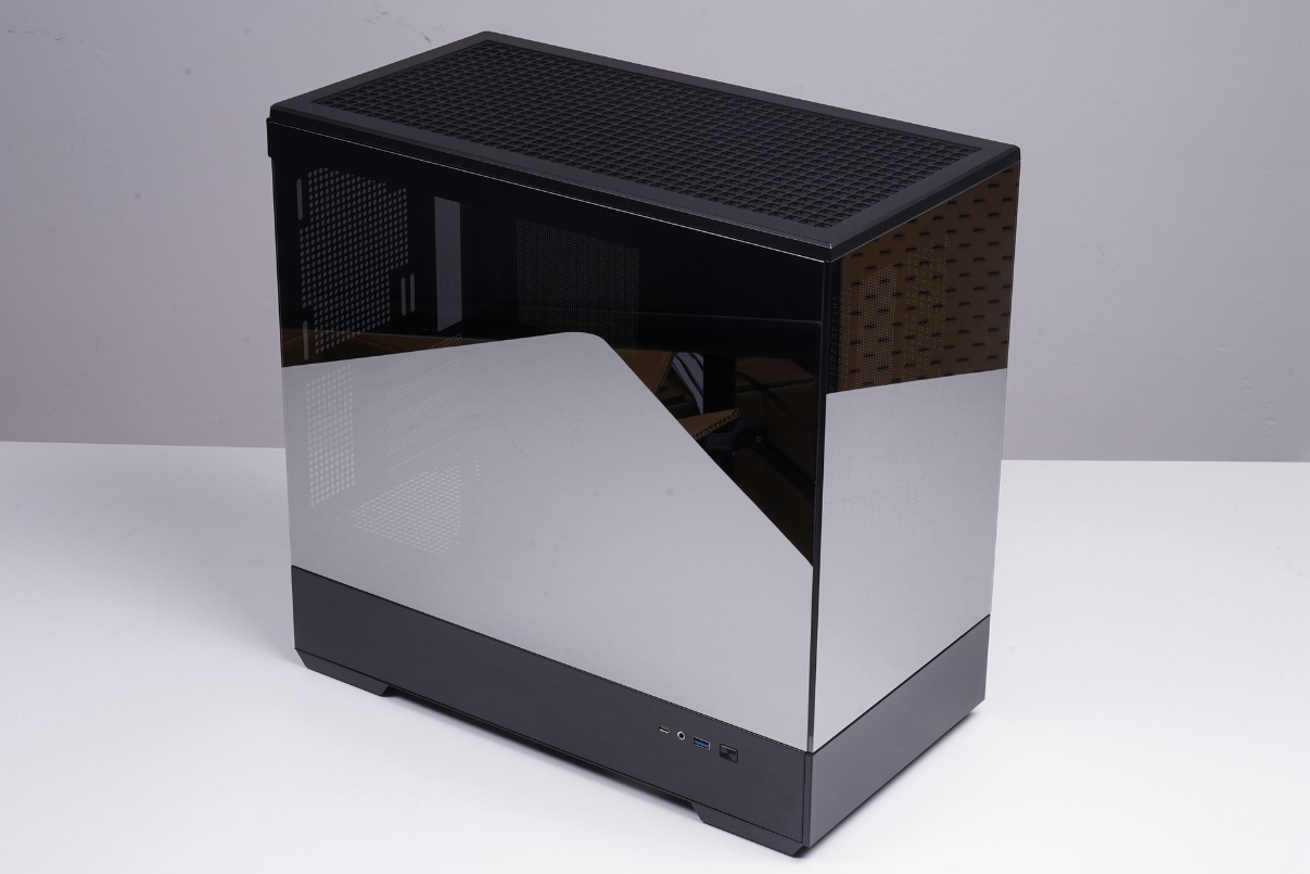 和常规玻璃面板的弱镜面效果不同,爱国者星璨岚镜面玻璃版的面板带有类似银镜的强烈反射效果,各种物体都可以清晰地照射,质感是相当不错。