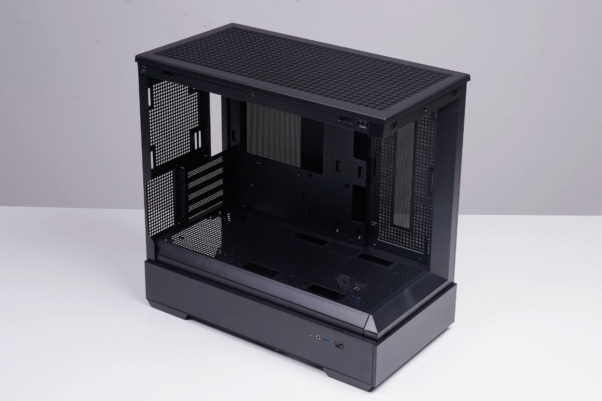 机箱的顶部和背面侧板开有大量的散热孔保证整机散热。