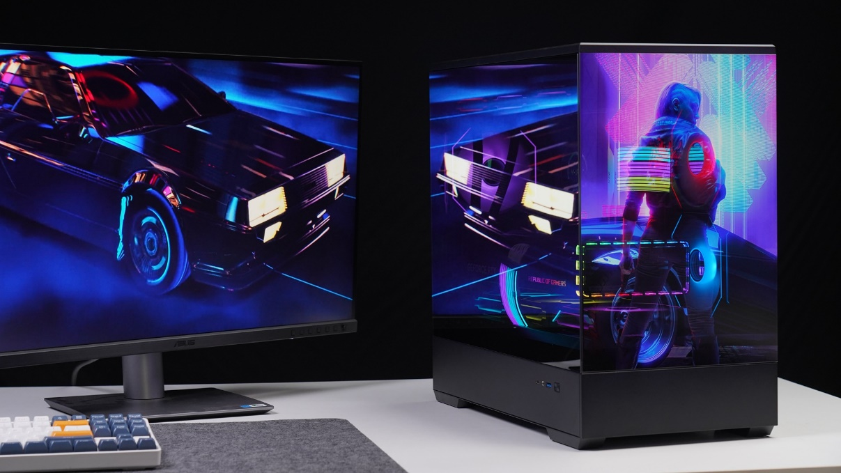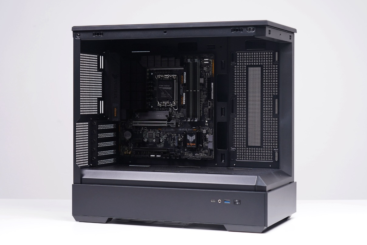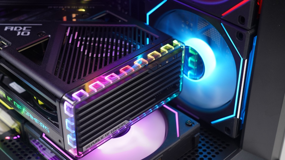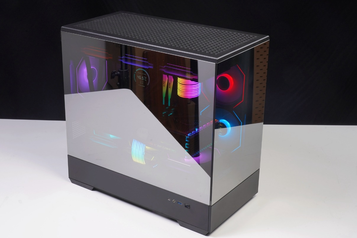 从整机装好的效果来看,爱国者星璨岚镜面玻璃版的空间还是很充足的,即使是ROG-STRIX-RTX4070TI-O12G-GAMING这种高性能显卡都可以轻松装入,而且满配的风扇还保证了整机的散热,使用的时候完全不用担心过热的问题。