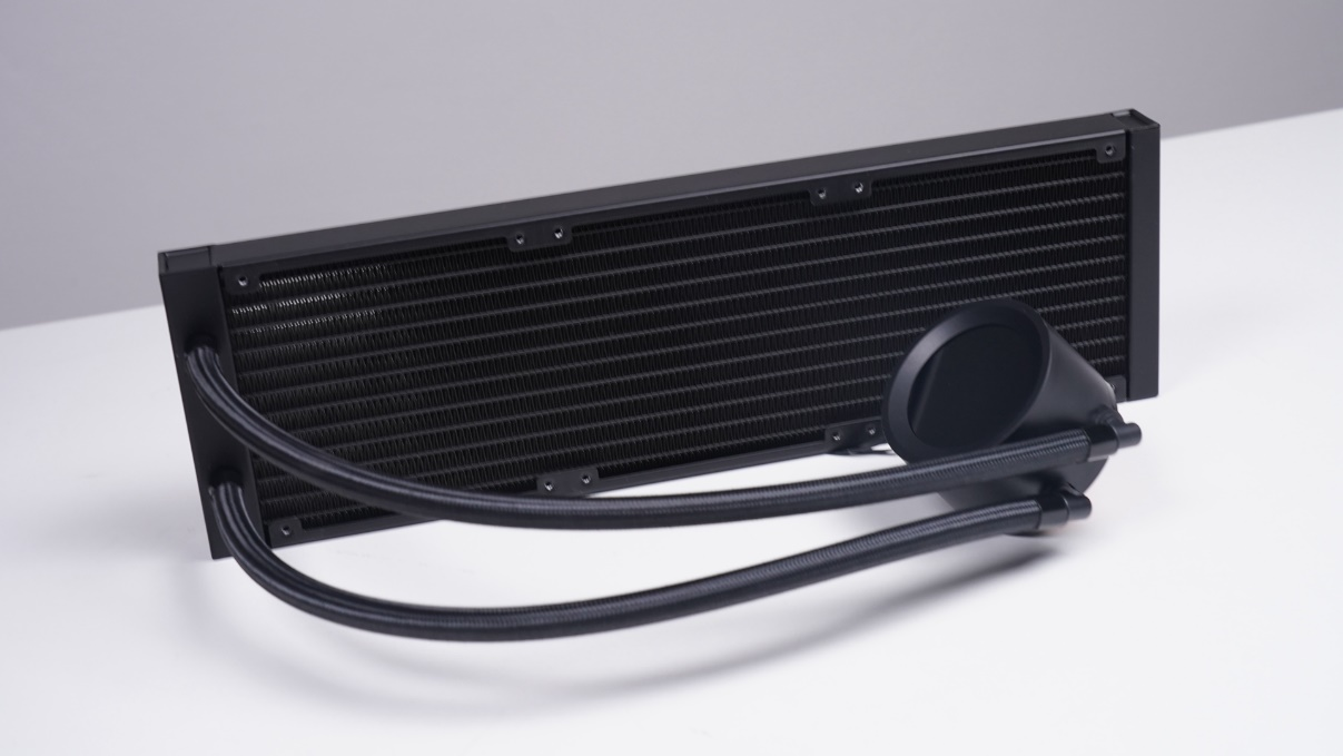 从水冷的整体设计来看,爱国者冰魄SX360使用的是加厚的360冷排,水管部分有400mm长,表面带编织网保护,整体做工足够精细,用来压制酷睿i5-13600KF非常轻松。