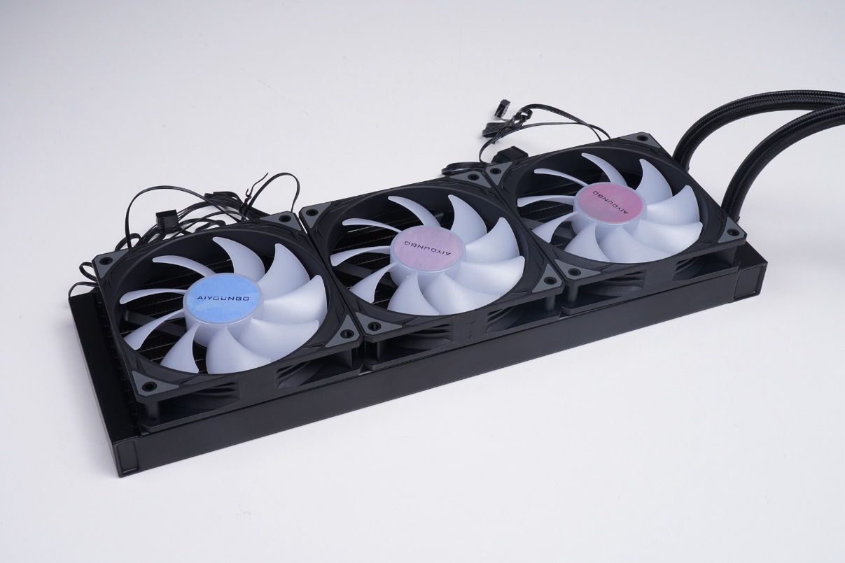 散热风扇方面,爱国者冰魄SX360标配的是三把支持ARGB光效的液压轴承扇,它可以支持最高2000RPM的PWM调速,最大风量和风压达78CFM和3mm H2O。
