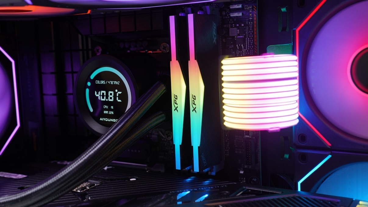 冷头的旁边是RGB的内存以及RGB的模组线进行搭配。
