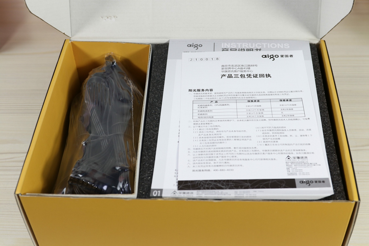 打开包装盒之后可以看到电源被厚厚的泡棉包裹着,而泡棉的外面则是电源线、说明书和三包凭证。