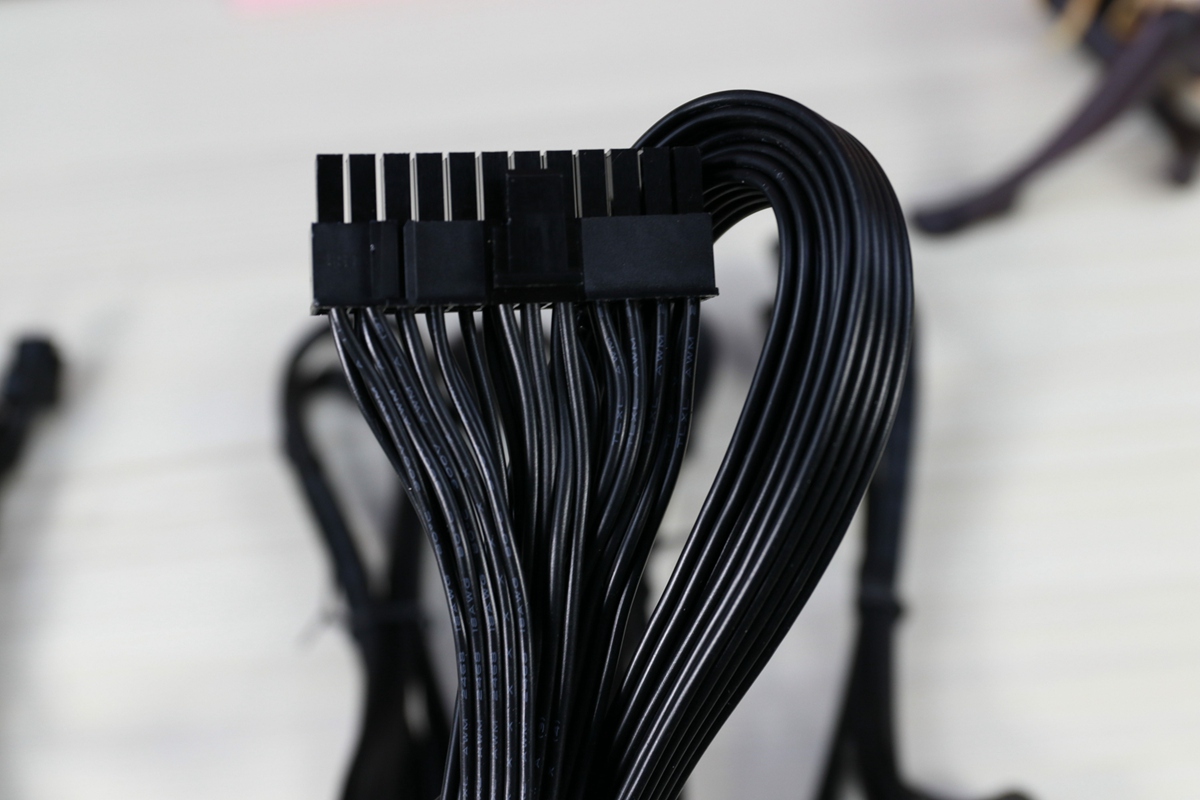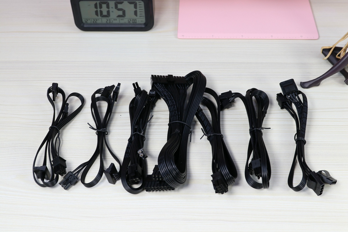 线材方面,爱国者ES650提供了一组24pin、一组CPU 4+4pin、两组6+2pin*2、2组SATA*3以及一组大D*3,用来满足大部分主流配置还是相当轻松的。如果觉得线材不够用的话,还可以自行定制更多的模组线。