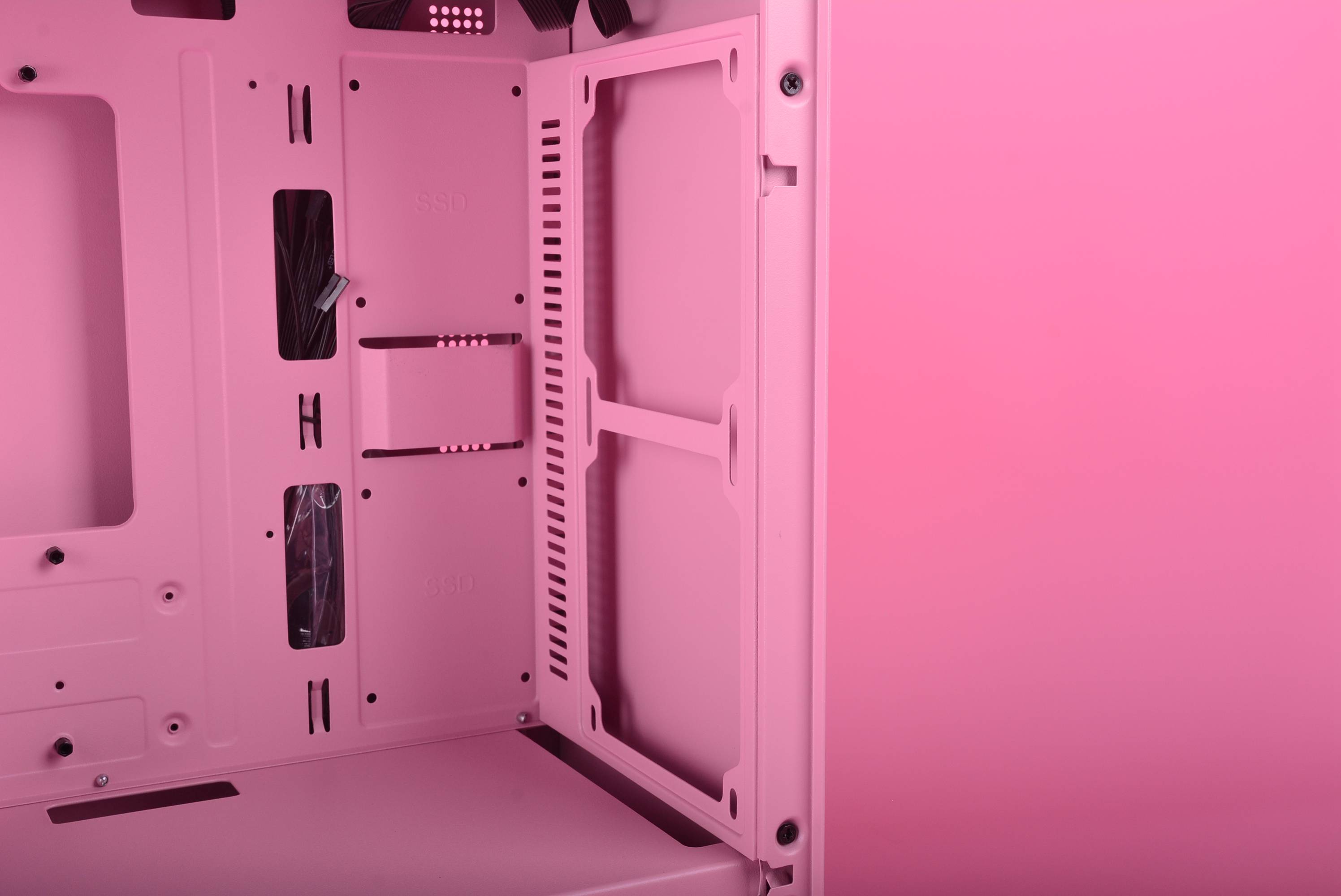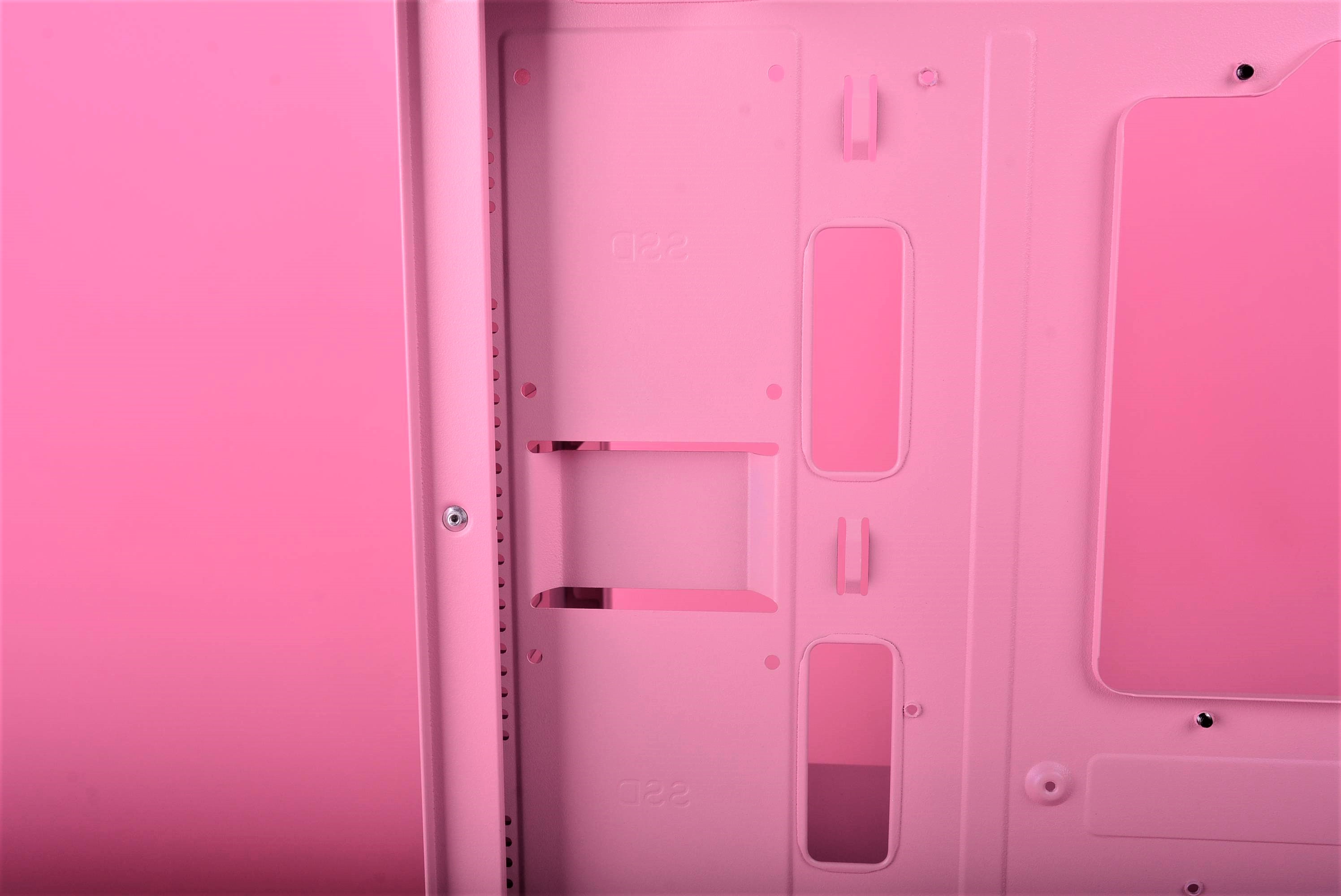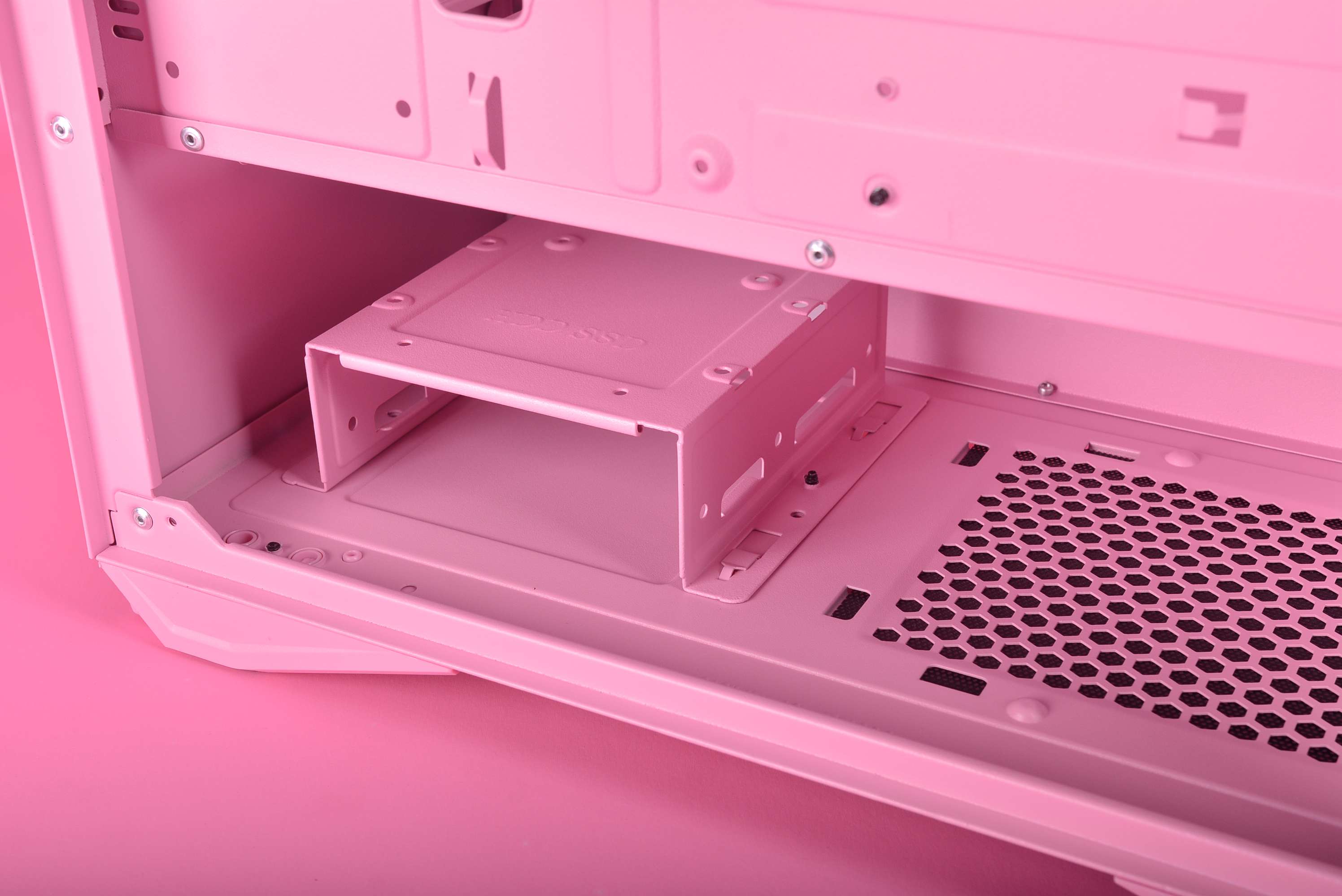 硬盘架同样也是粉色的,硬盘架最多支持2*HDD。