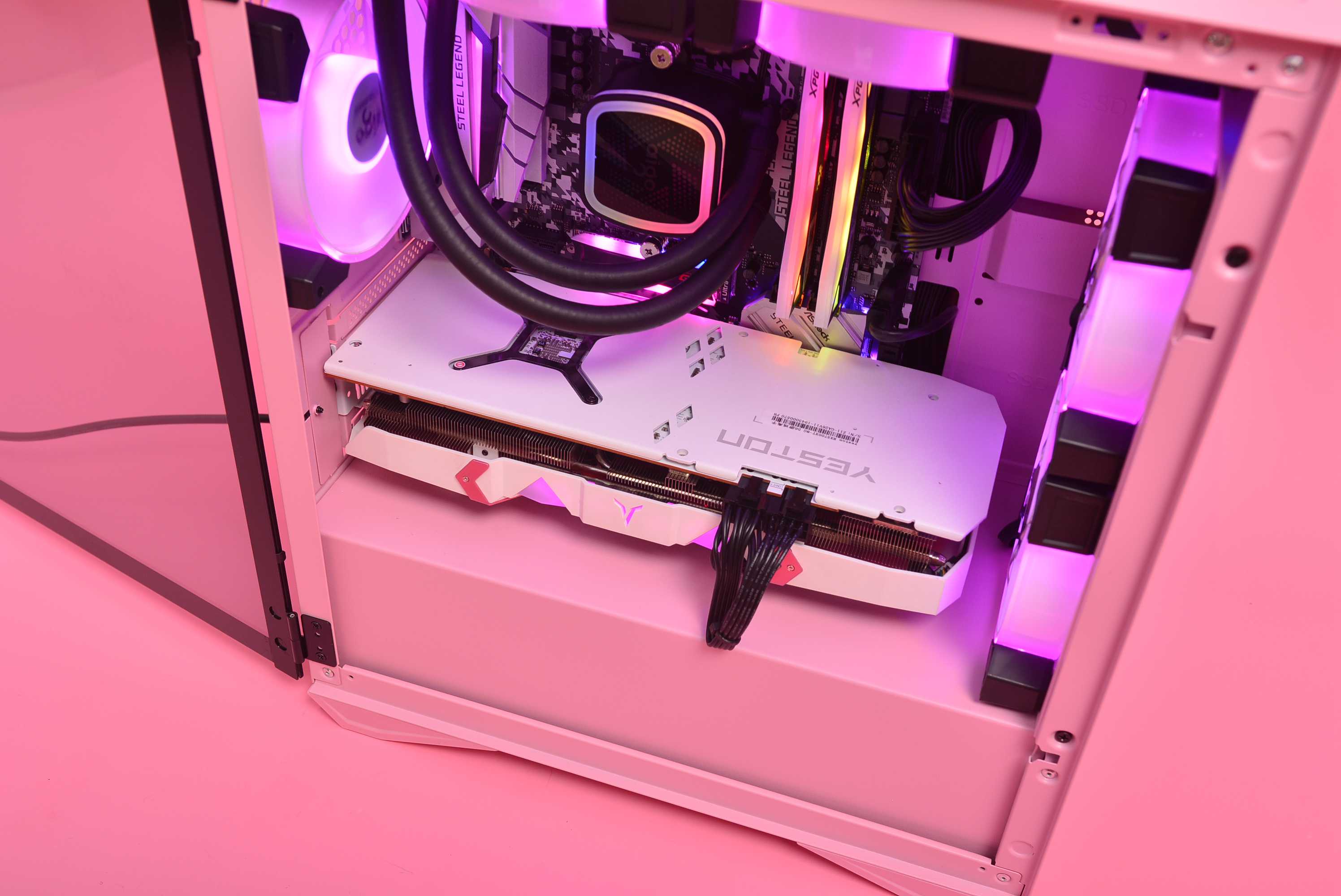 显卡是盈通的游戏高手RX 5700XT,我感觉应该叫女装高手差不多。