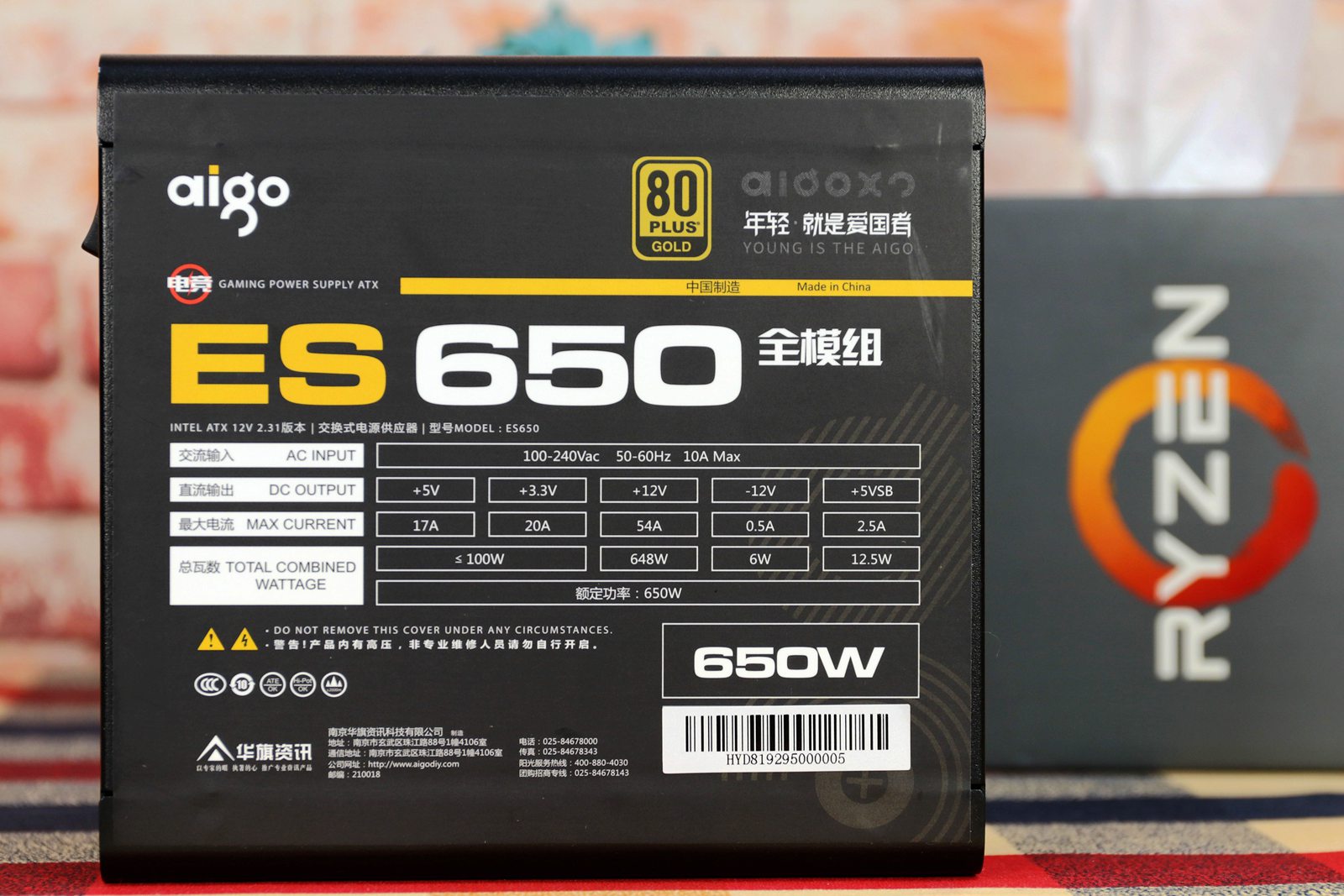 兜兜转转又是10年,旧平台垂暮,更换新平台是迫不及待了,毕竟日常使用的软件都随着硬件的更新换代而推陈出新了。所以思前想后还是转粉最近非常流行的3A平台,毕竟一套配置的战几年还是毫无悬念的,又不是年年更新换代。这次准备搭配的是锐龙R7 3700X+RX 5700XT平台战3-5年,在电源搭配上也是需要一款有足够瓦数和品控保证和使用时效能与硬件匹配的电源,所以趁着其他配件正在路中奔波中先来晒下这次入手的—AIGO 电竞ES650 650W全模组电源。