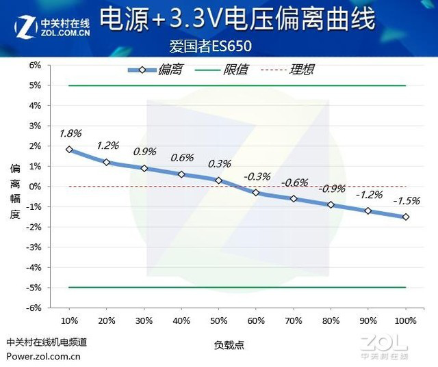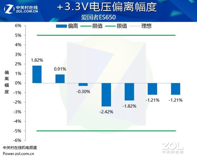 爱国者ES650电源+3.3V交叉负载电压偏离