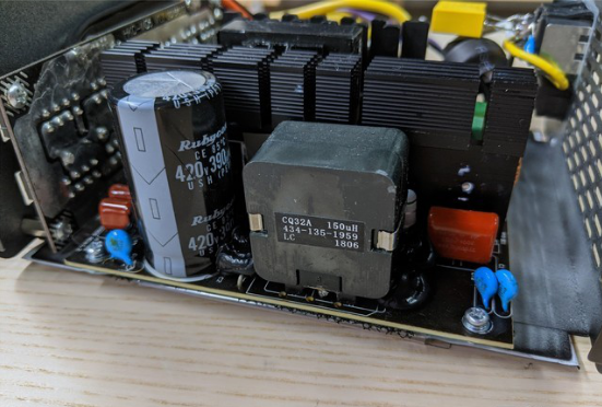 在测试了电源的输出表现之后,我们再拆开电源来看看产品内部的做工和用料表现。爱国者ES650电源采用了主动式PFC+LLC谐振+DC to DC的设计,也是其金牌效能和稳定输出的保障。