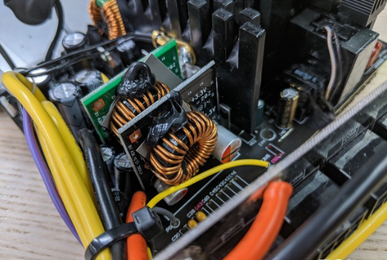 电源的二级EMI电路齐全,主电容采用了日系390微法电容,搭配输出端的台系固态加点解电容有效降低了输出纹波,让电源在不同环境下也能保证输出的纯净。