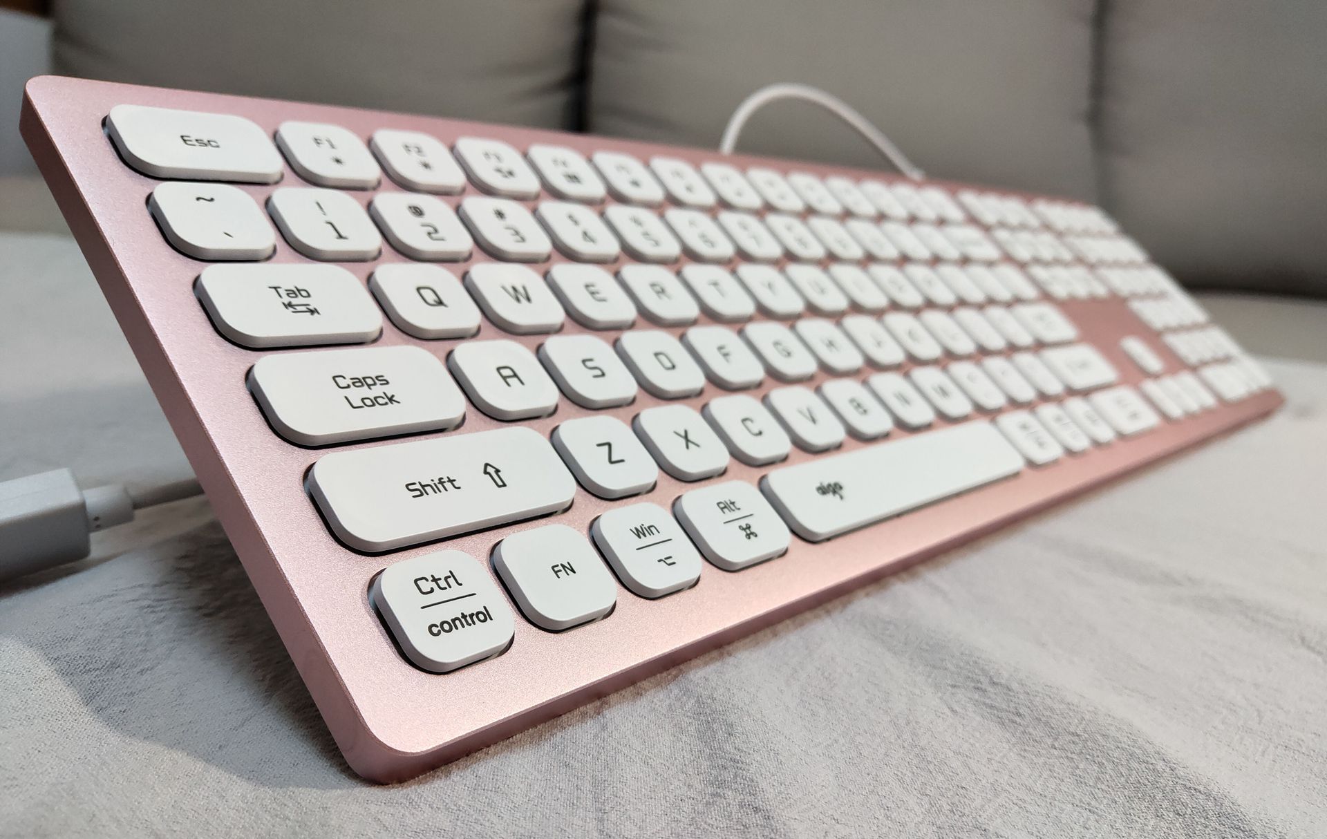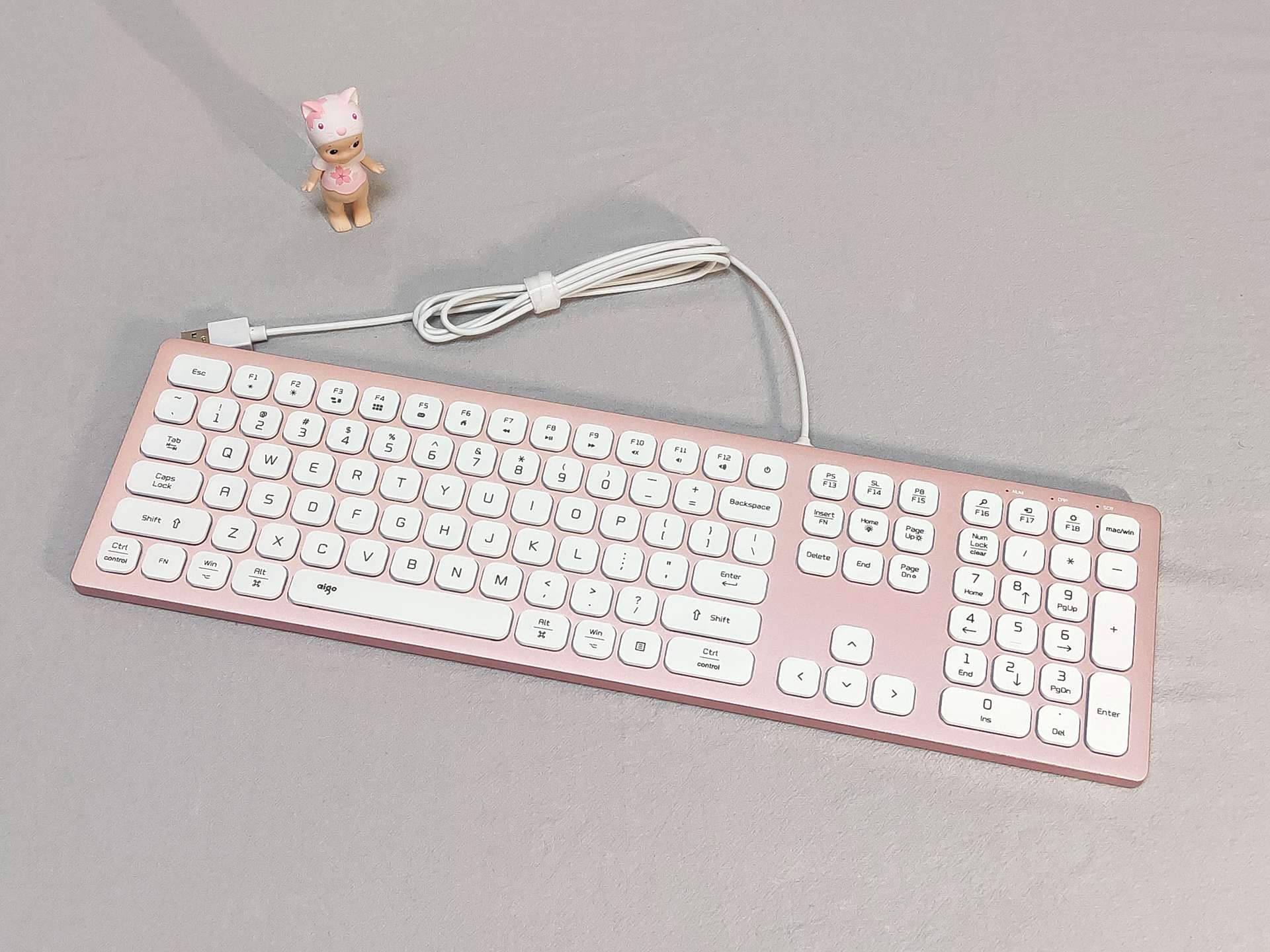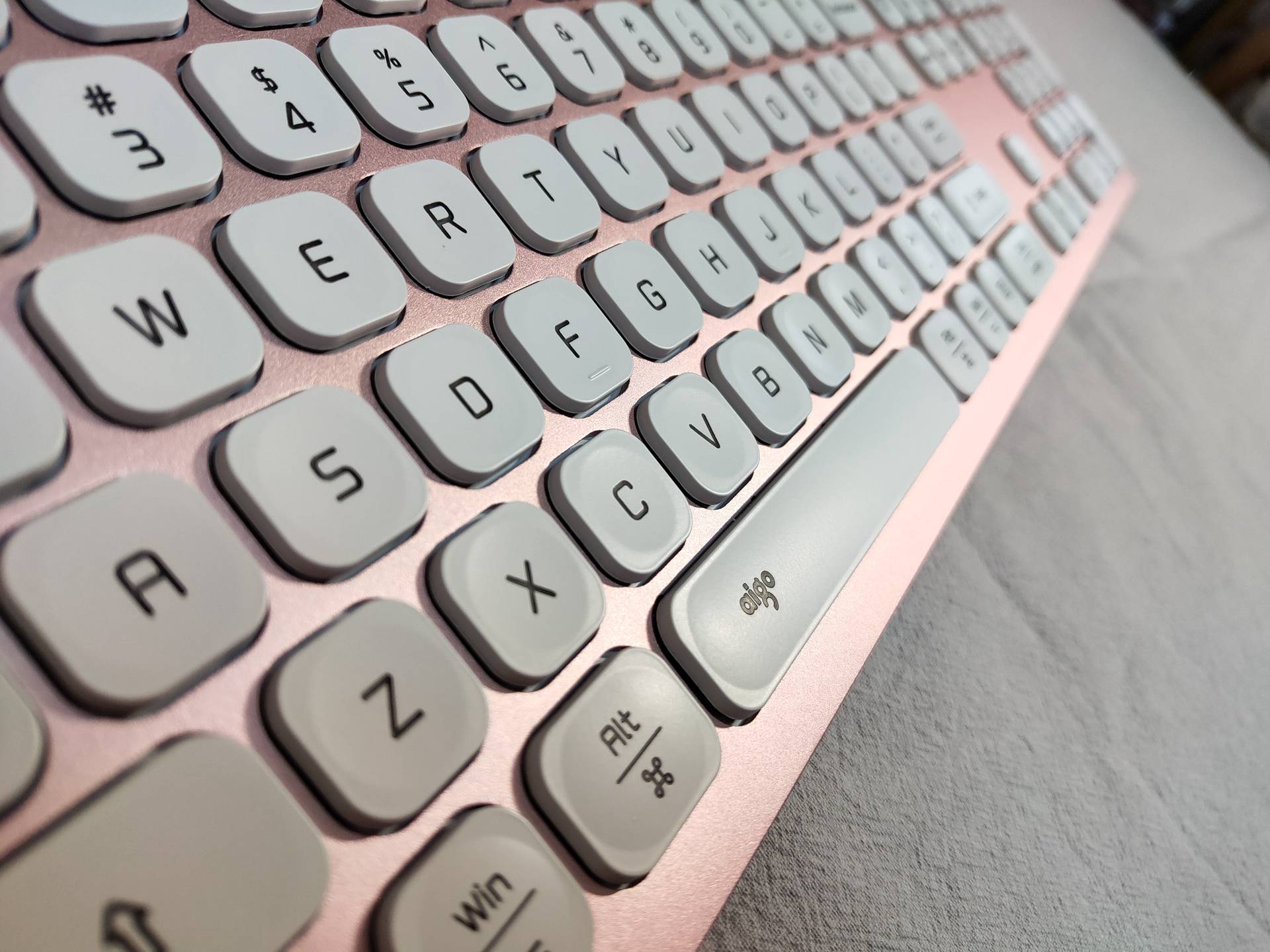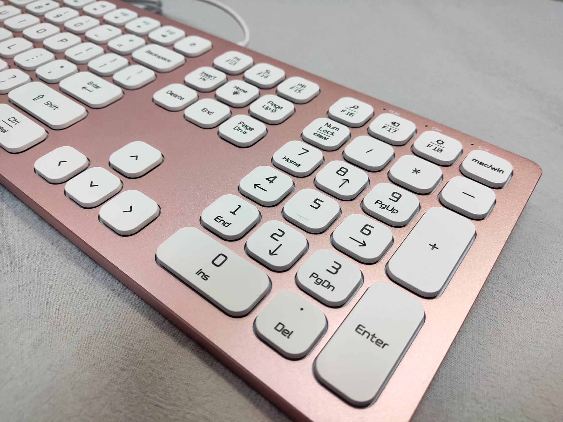 粉色系主机自然还需粉色外设,这款键盘也是电脑城发小安利的(谁让他是做这个的。。。),一个比较有特色的点是有MAC模式,正好可以用在基友“领导”的Air机器上,算是一举两用吧。外观还是不错的,键程短,软硬适中,回弹有力,比某些品牌笔记本的巧克力键盘手感好上一些。