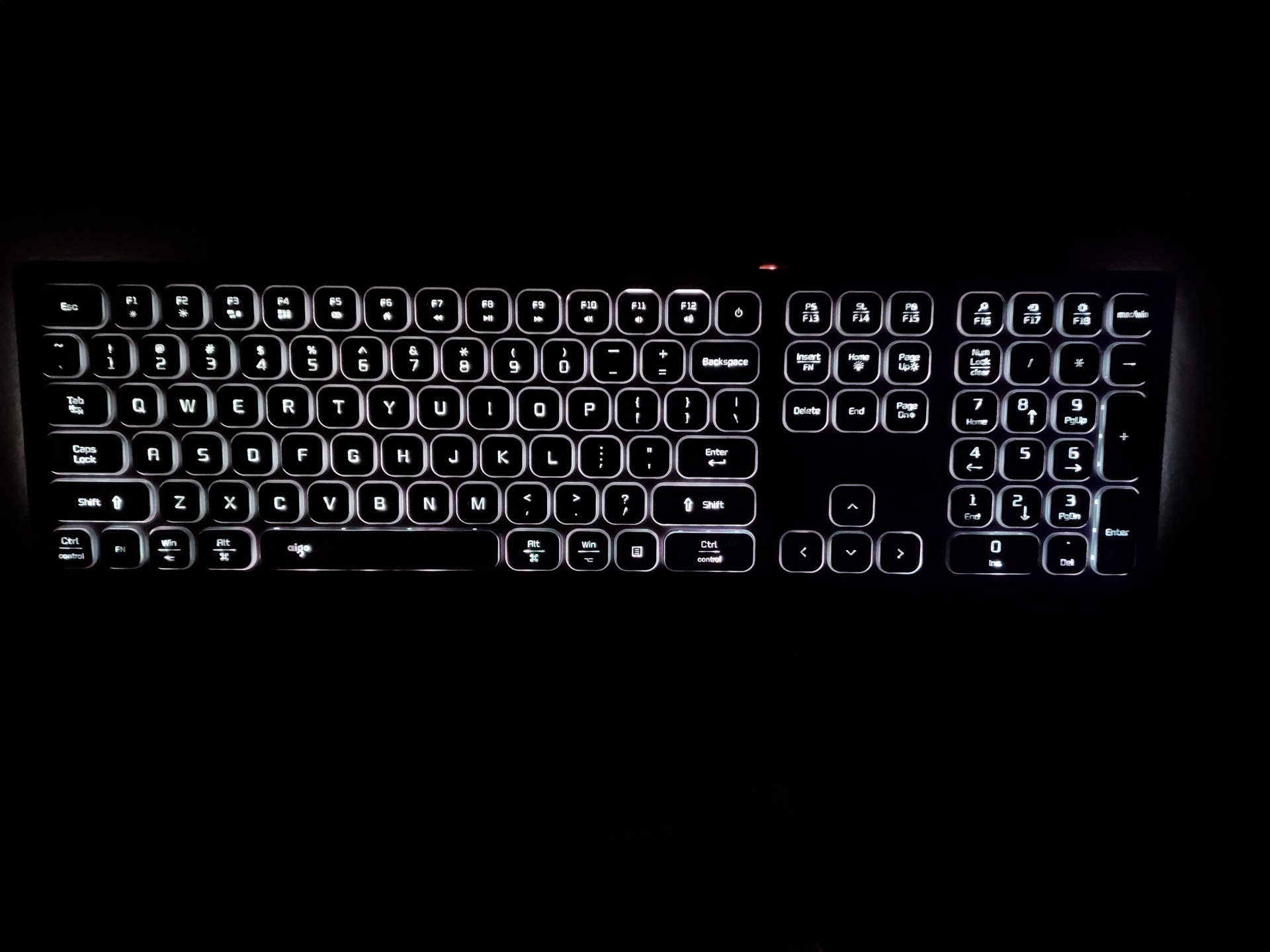 键盘上排的字母键是内凹设计,方便打字时定位,而最下面的组合键则是内凸设计,比较人性化。