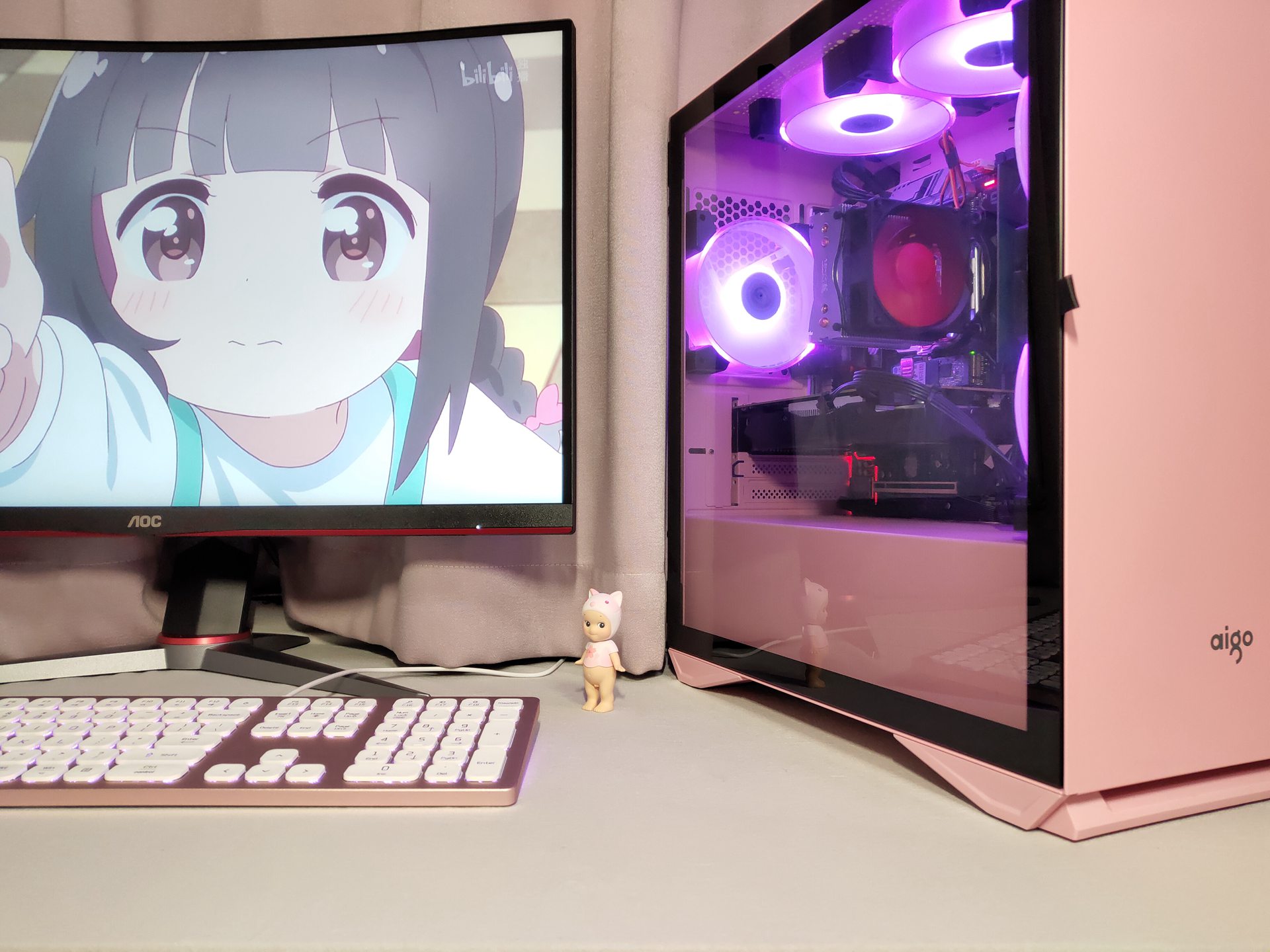 粉色这个颜色似乎成了2020年的流行色之一,最近新出的手机三星S20、小米10、OPPO Find X2 Pro等无一例外都有粉色款,任天堂也推出了珊瑚粉的Switch Lite,而PC这一块自然也不会缺席,机箱、显卡、水冷、键盘等等都有一些粉色款可选(虽然可选的还是比较少),近日基友家里“领导”嫌老电脑速度太慢遂新配了一台主机,粉色自然成了首选色,说实话,当这一套粉色主机装完时看的我都有点心动了。