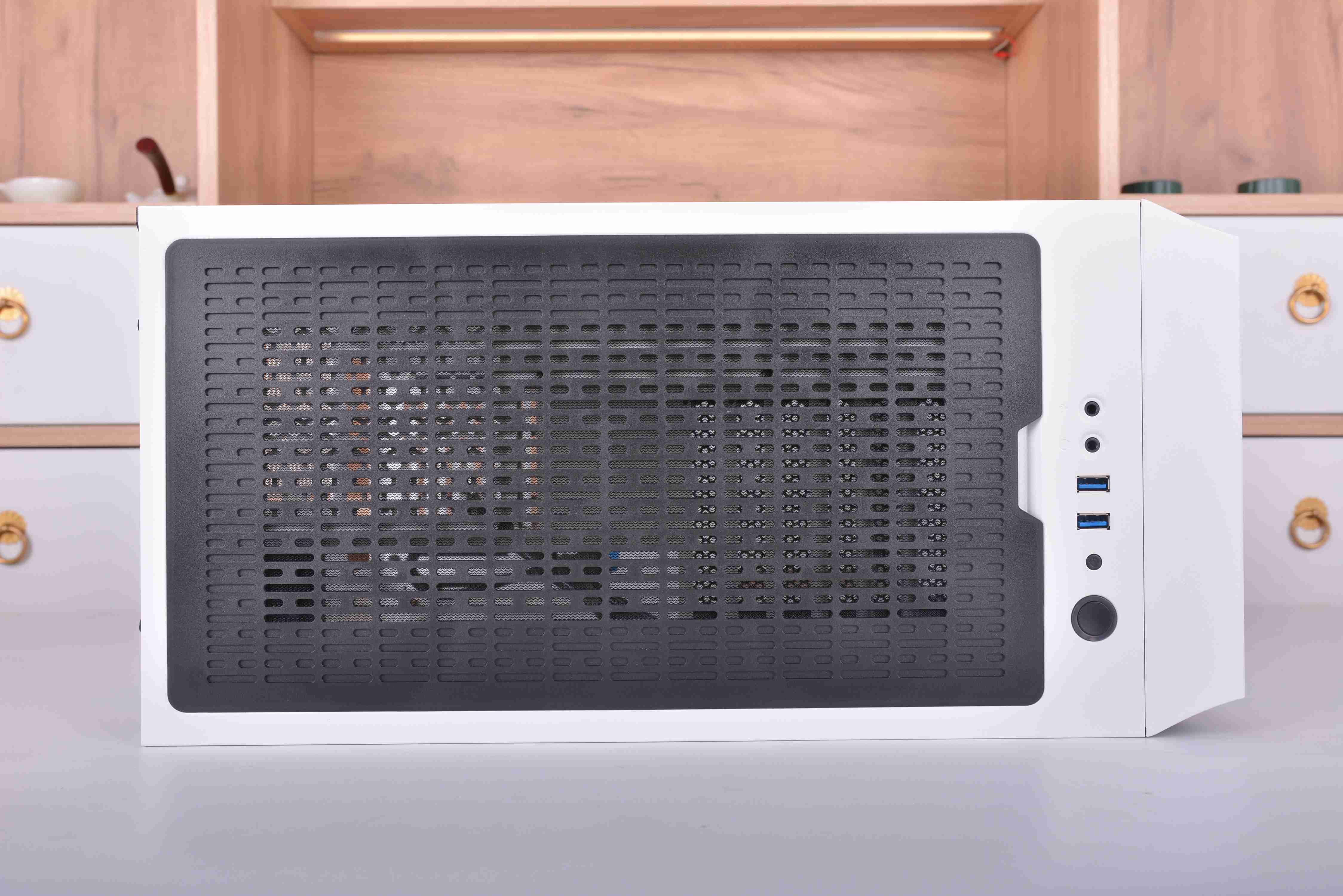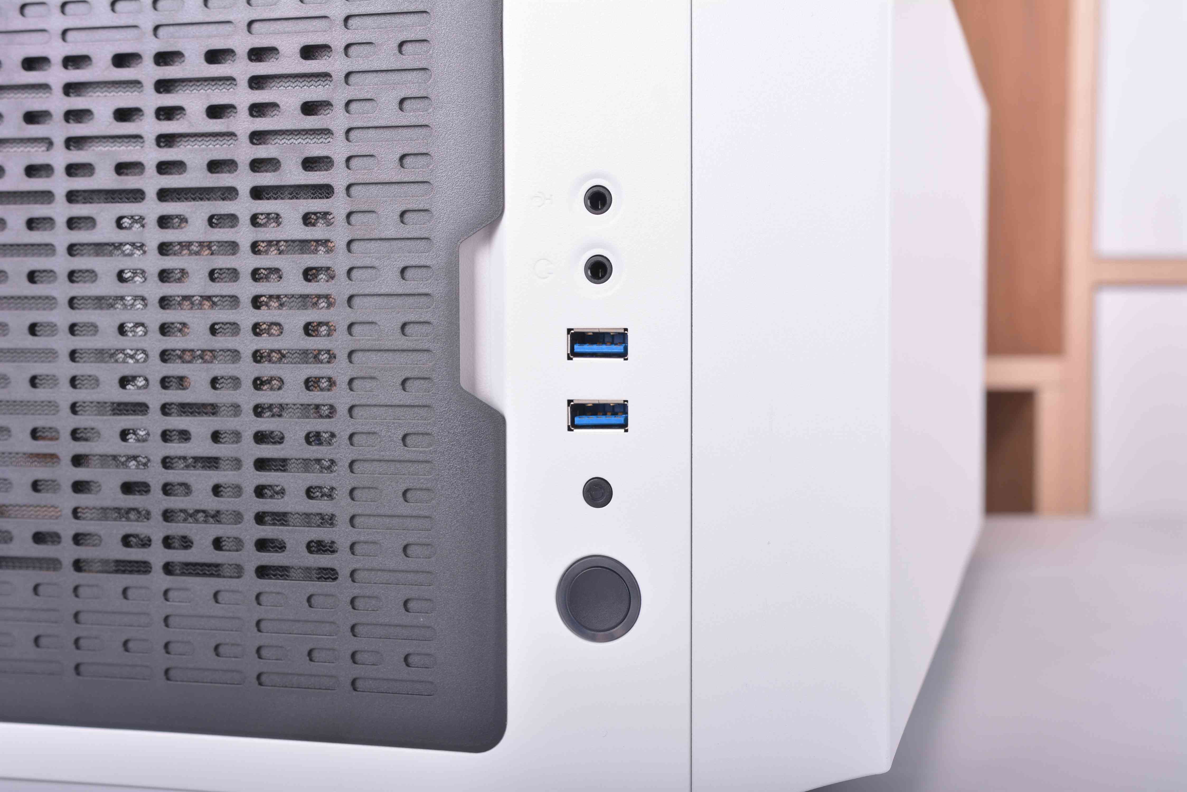 机箱面板的I/O布置在机箱顶部,标配了两个USB3.0接口。