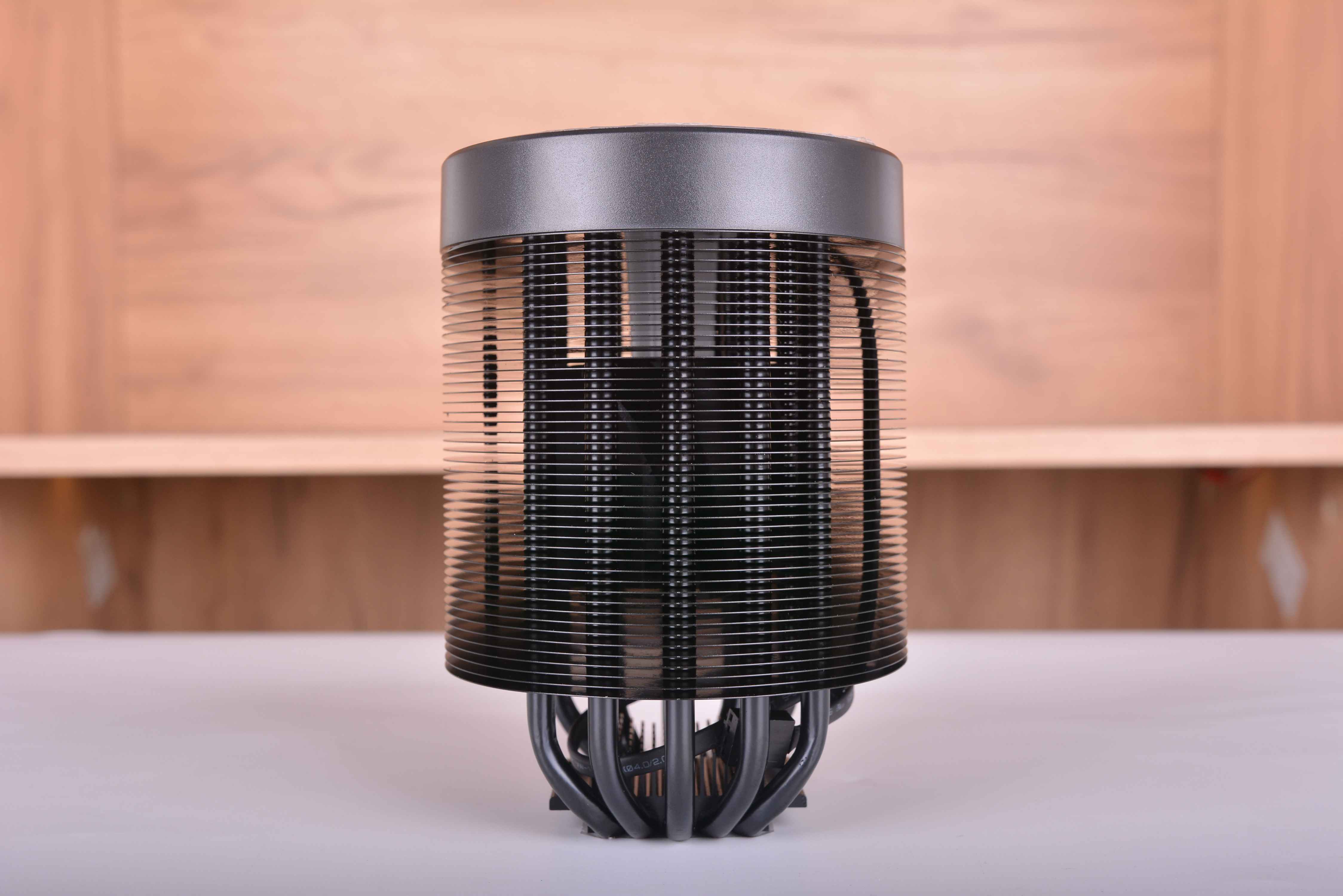 碟影MAX通体进行了黑化处理,整个外形就是一个圆柱体,圆形的散热鳍片包裹着热管。