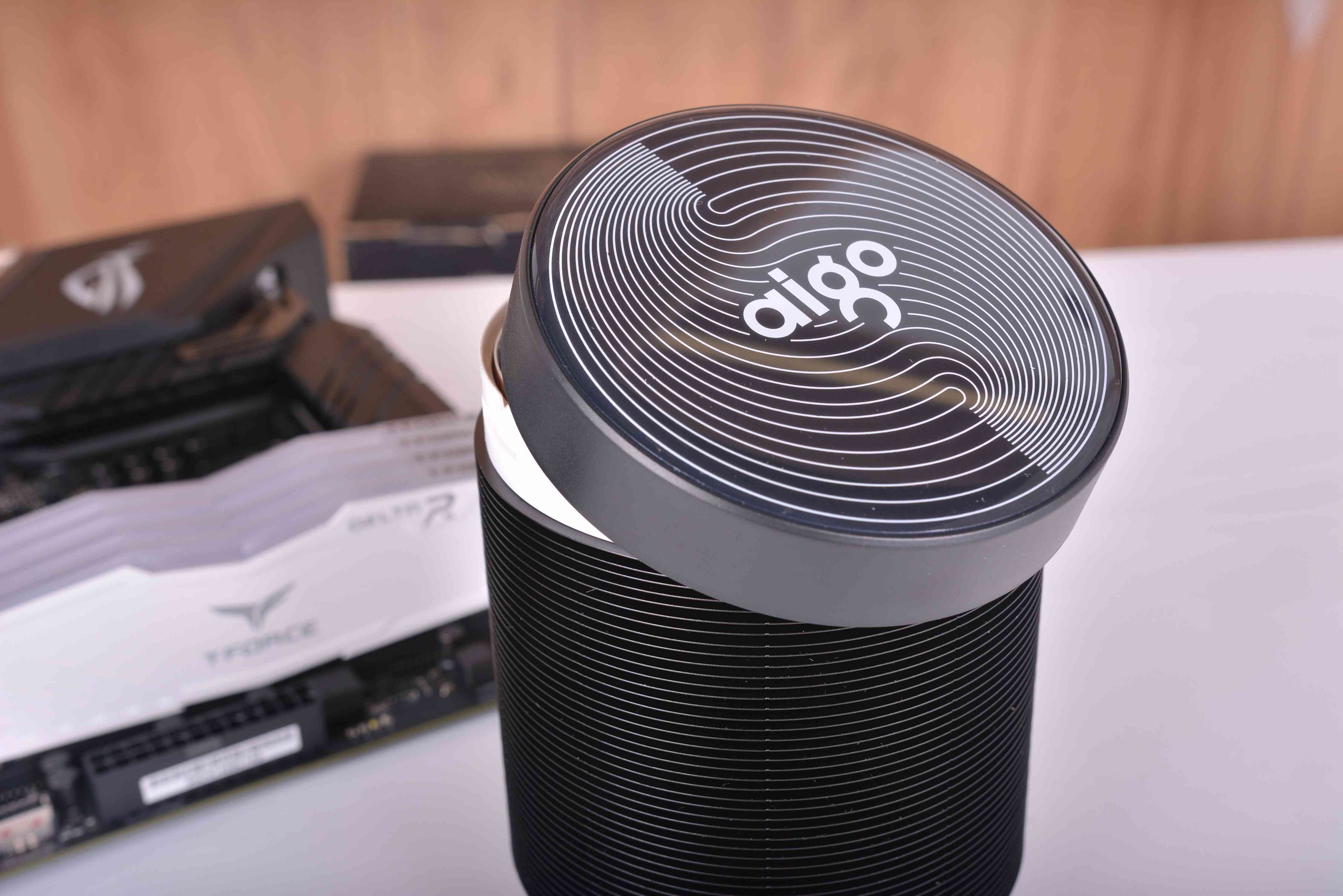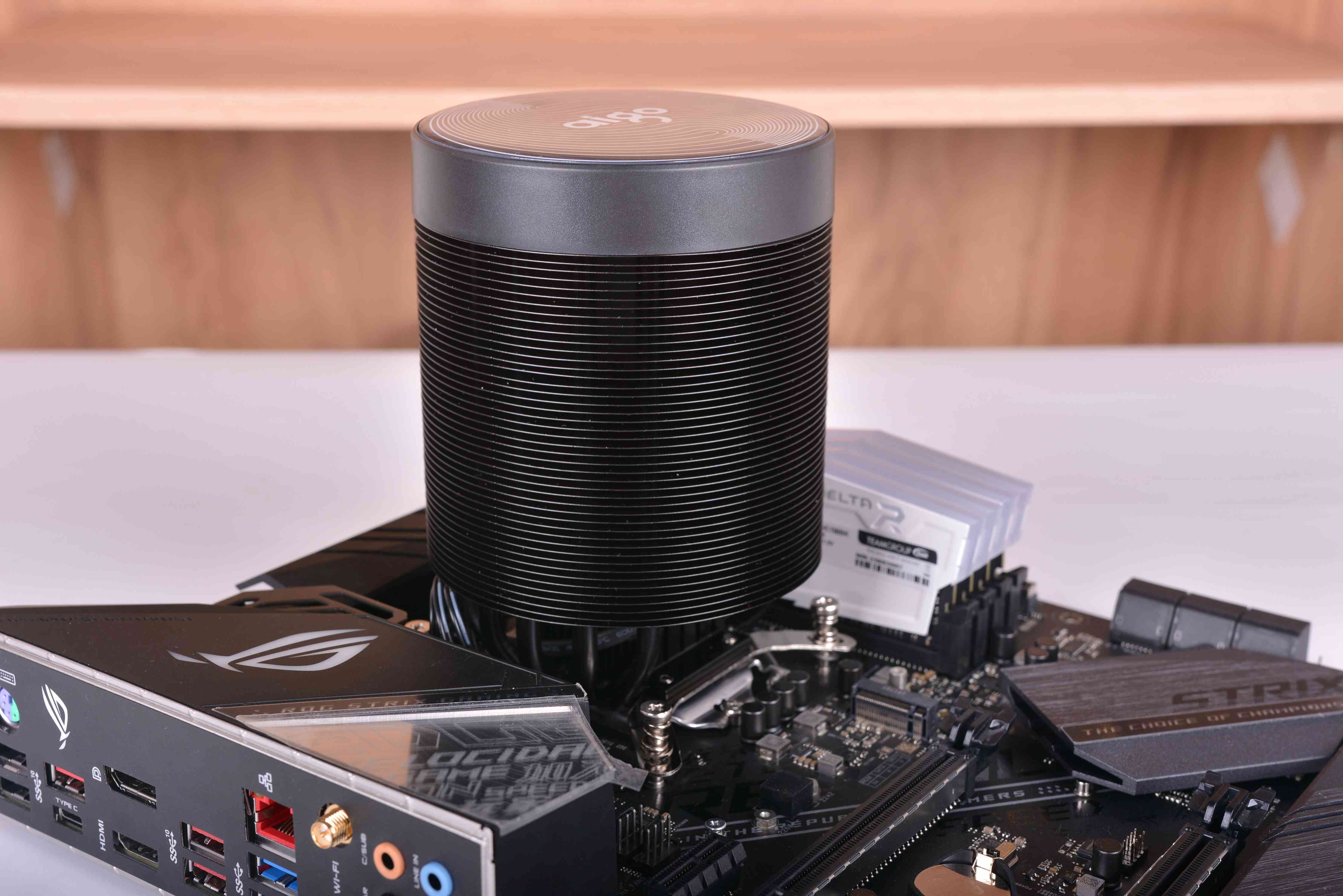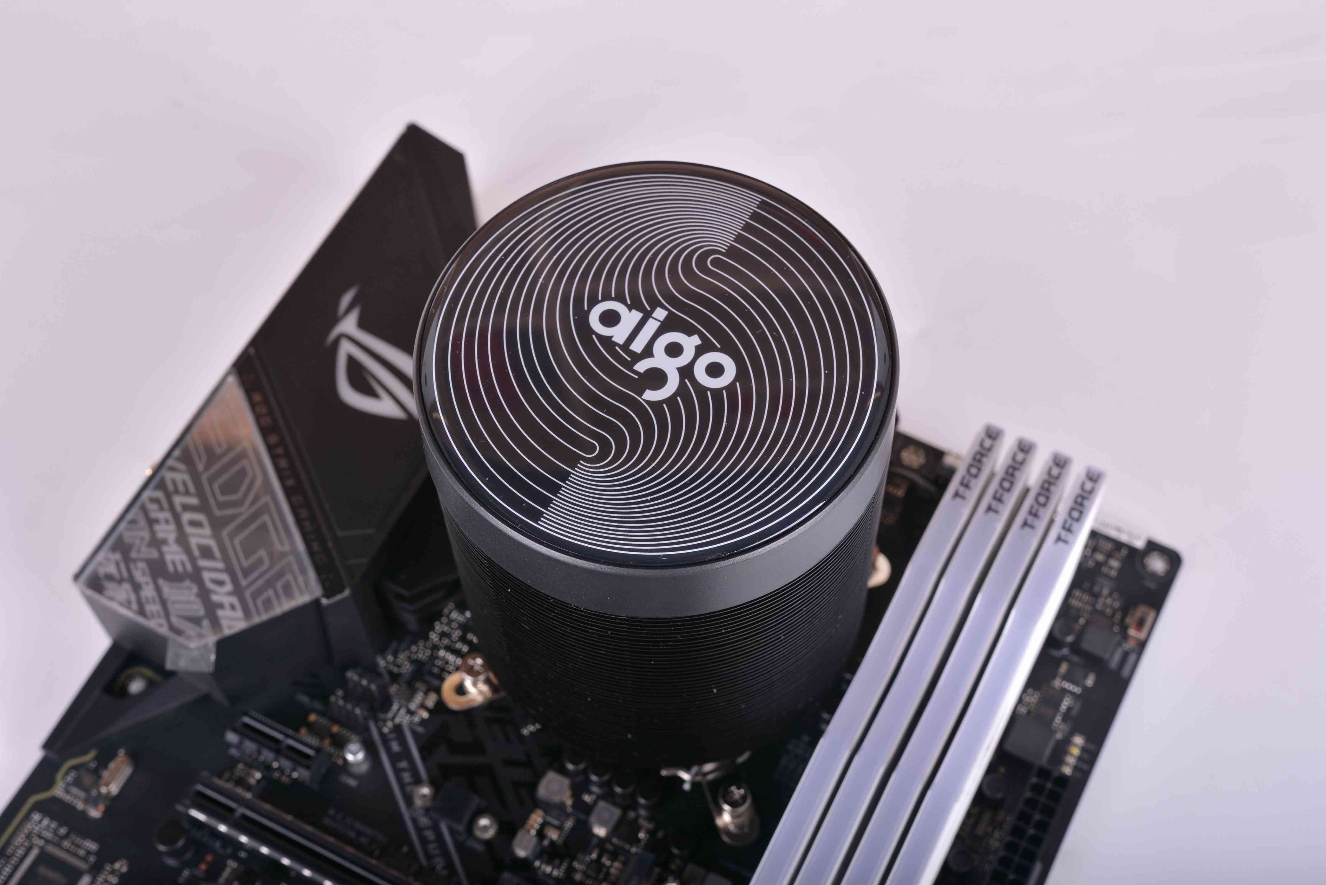 散热器方面,本来是想试装240水冷的,但是在买破晓X时候看到官方宣传图上面有一个神奇的圆柱形散热器,叫碟影MAX,也是爱国者的新品当时看得我一脸懵逼,我纳闷这个散热器的空气流动到底怎么样,散热效果是不是几乎为0?只是好看没用?作为小朋友的我小小的脑袋里面有着大大的问号,所以为了搞清楚也整了个回来玩玩。