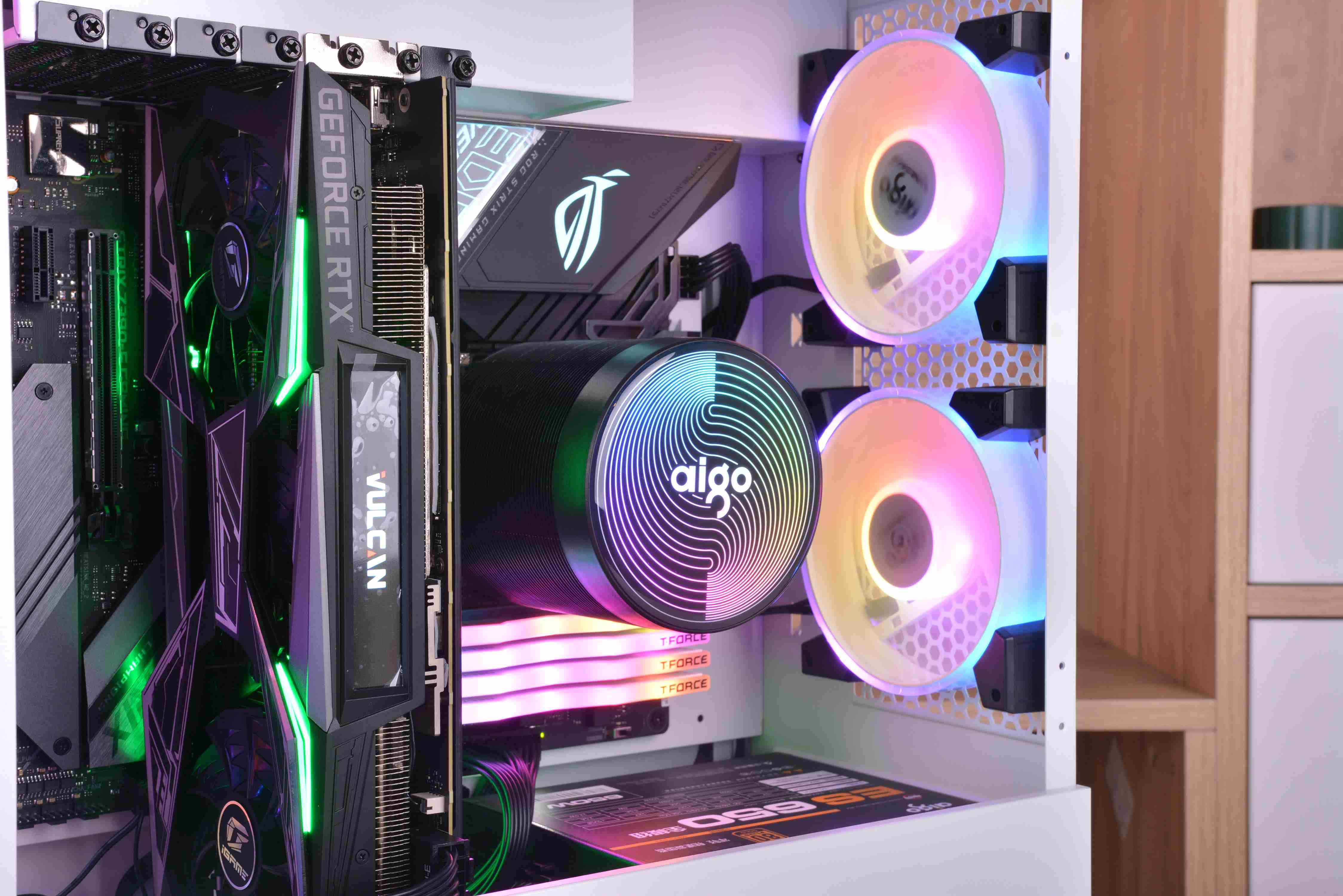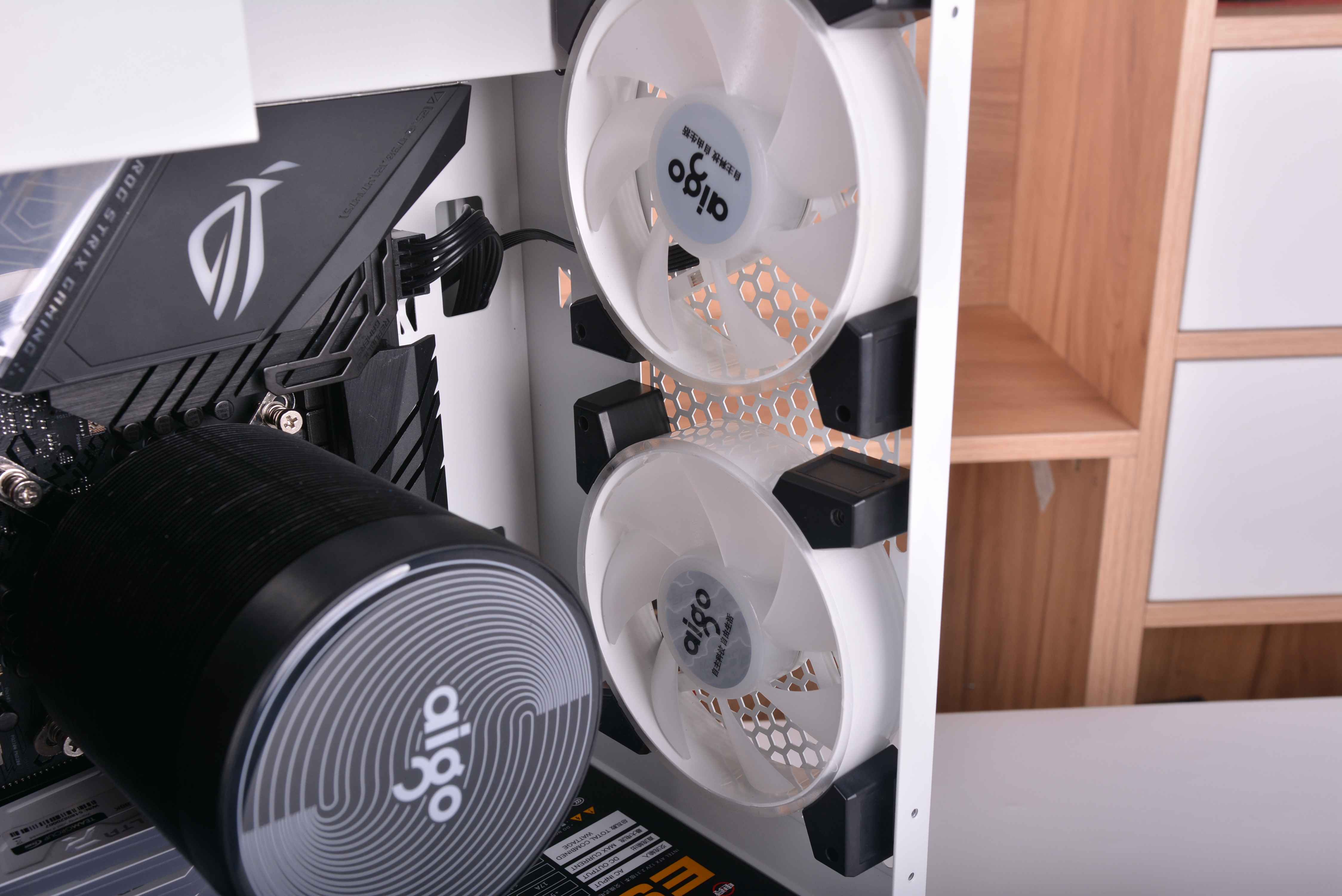 风扇方面之前买的爱国者暮光C3,高颜值灯扇,价格也还算过得去。风扇外框也能发光是我最喜欢的特点。