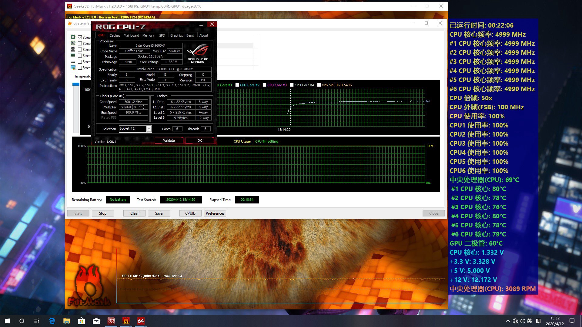 主板型号是ROG Z390-E GAMING,搭配I5-9600KF。