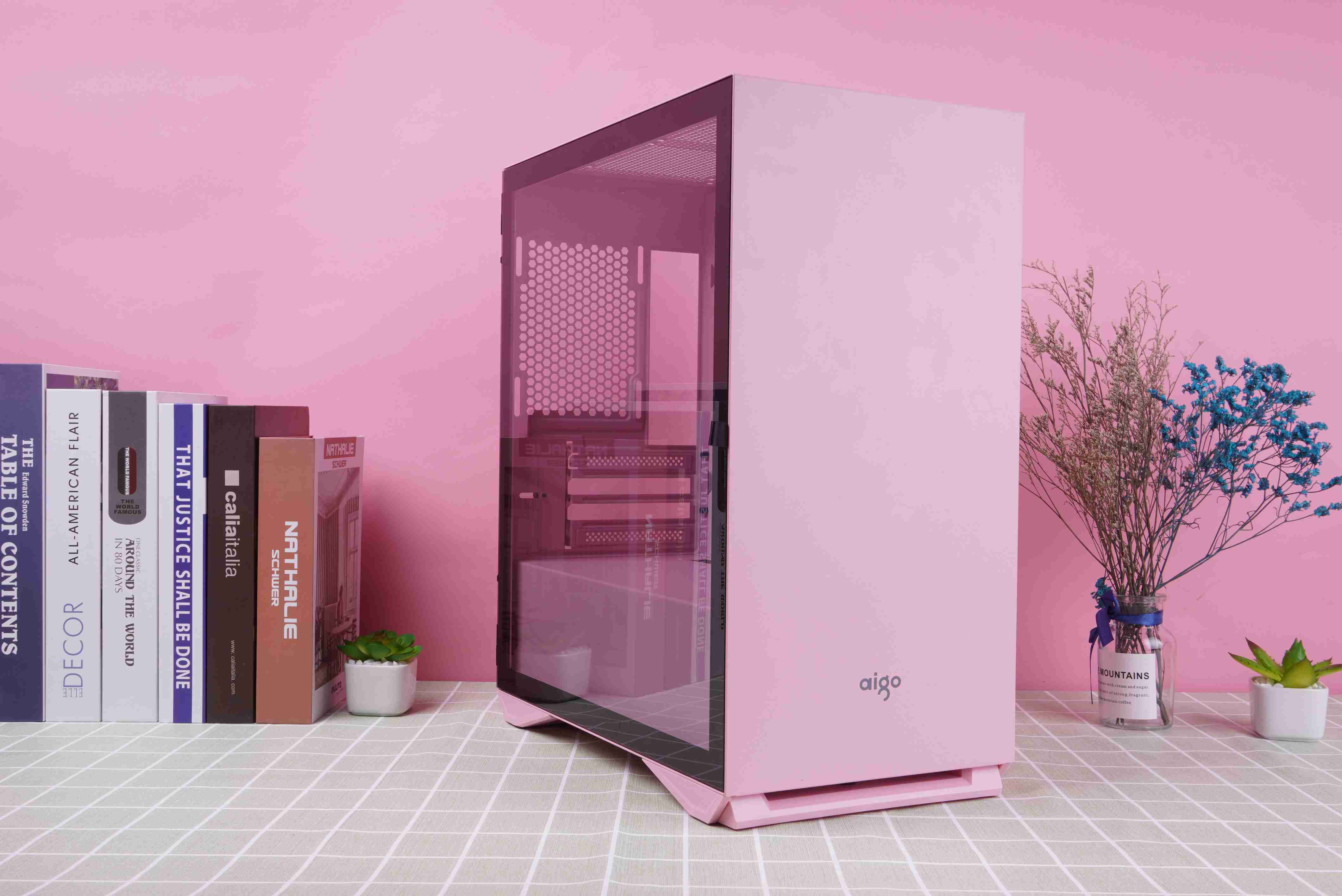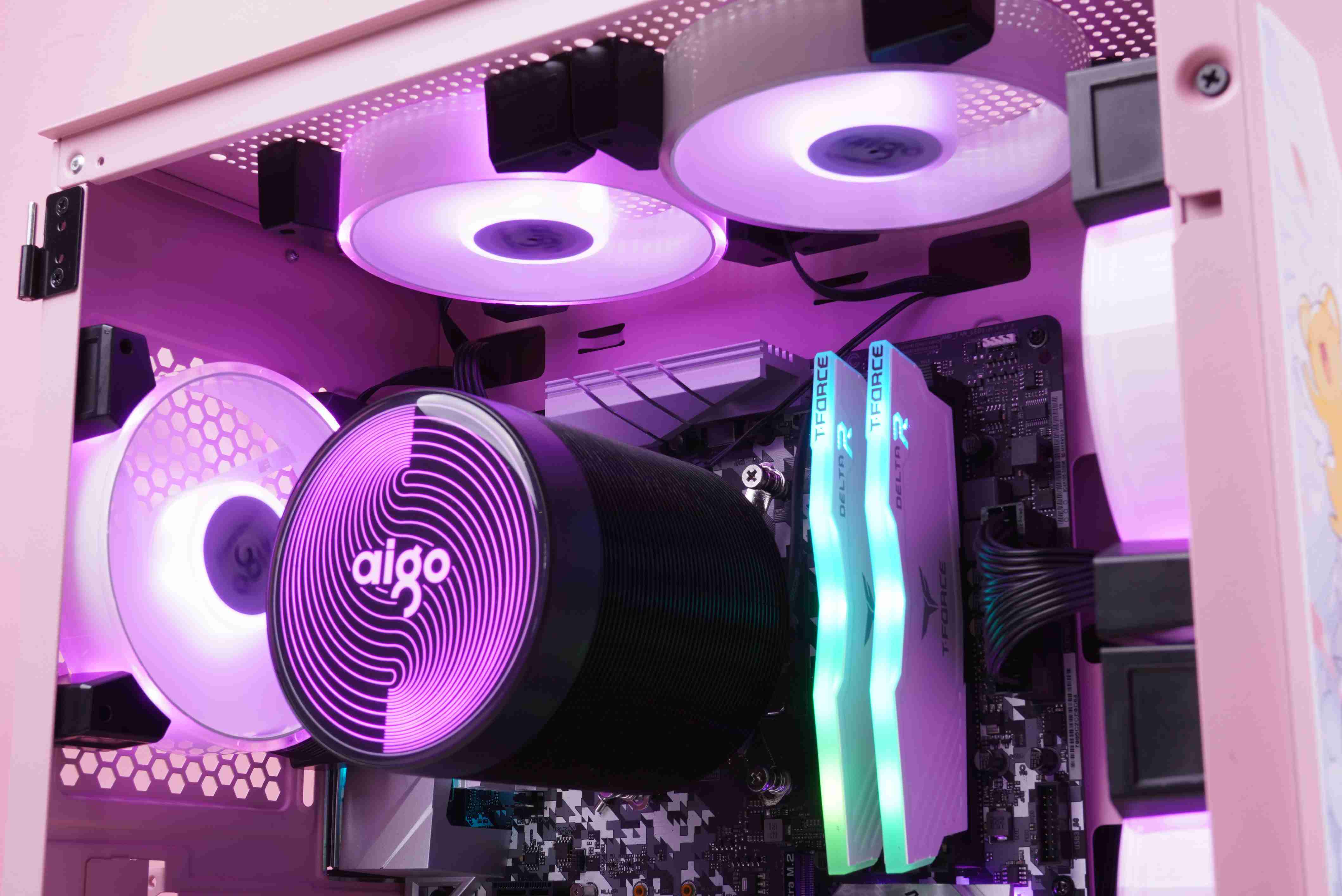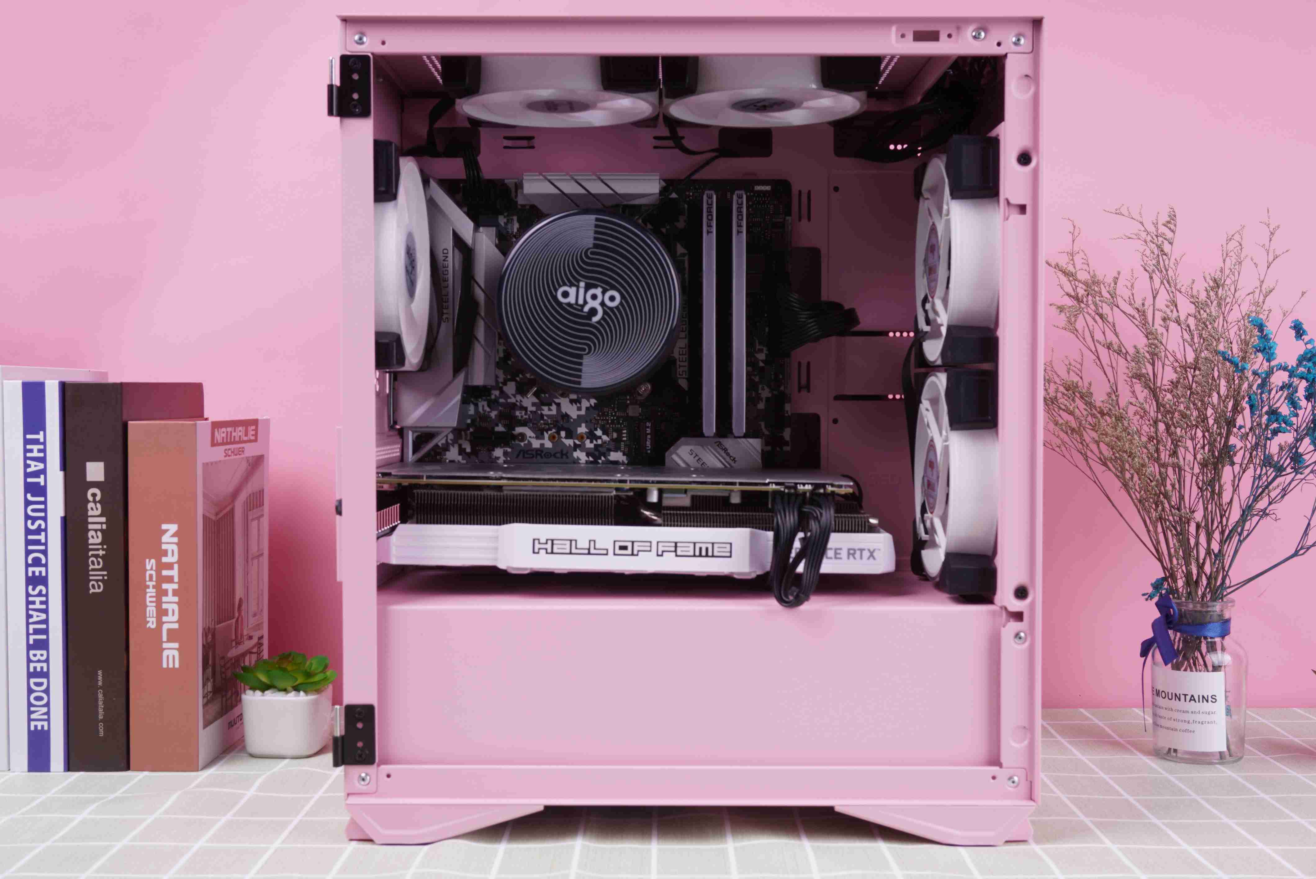 整机完成后的效果,粉色机箱真的是再也适合不过了。