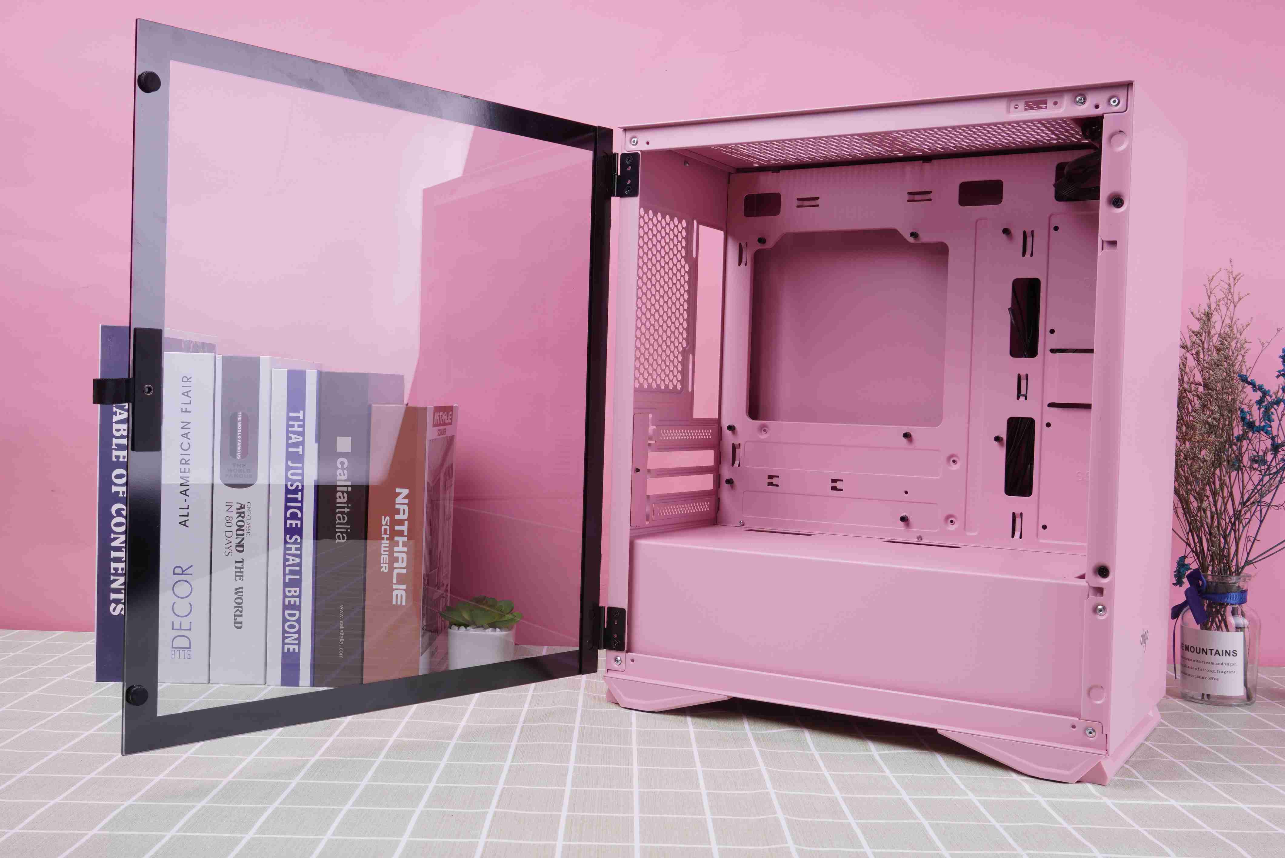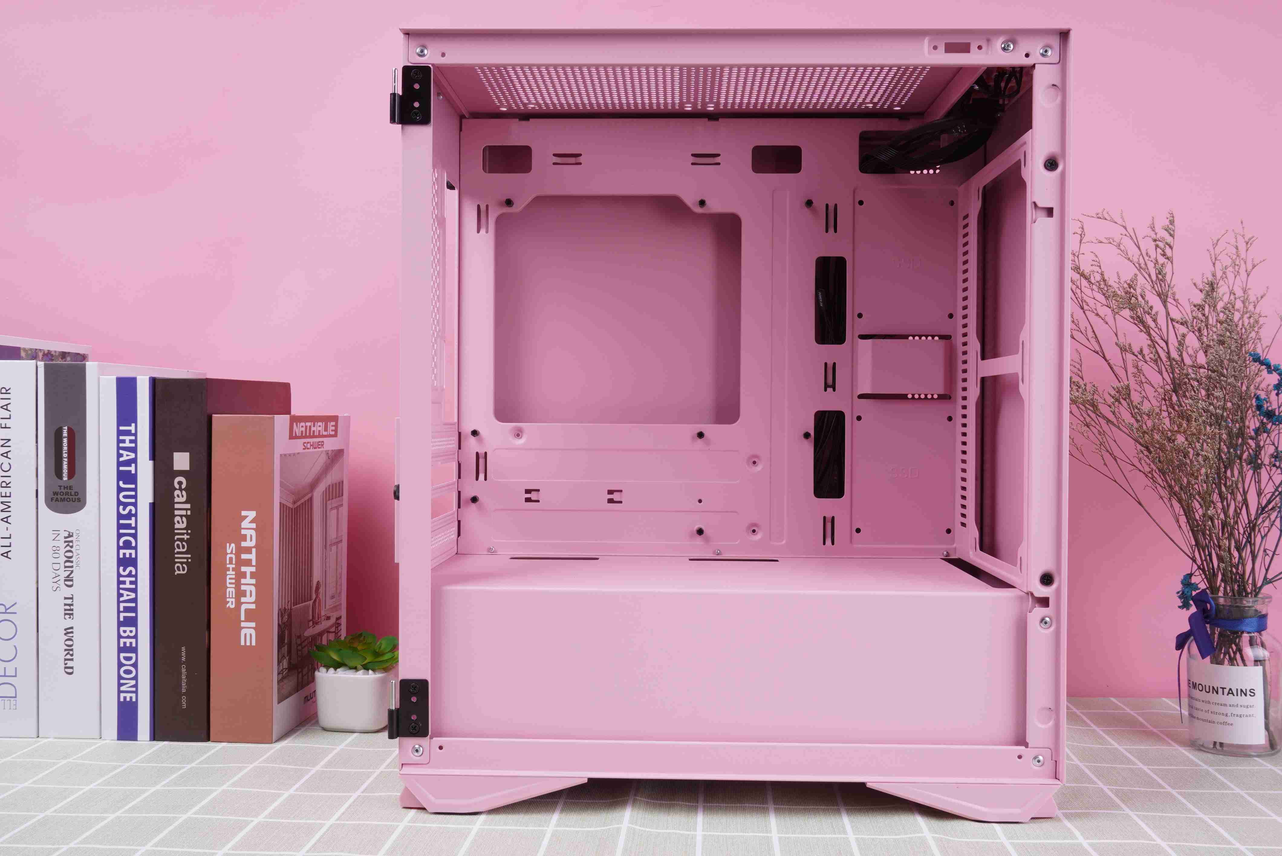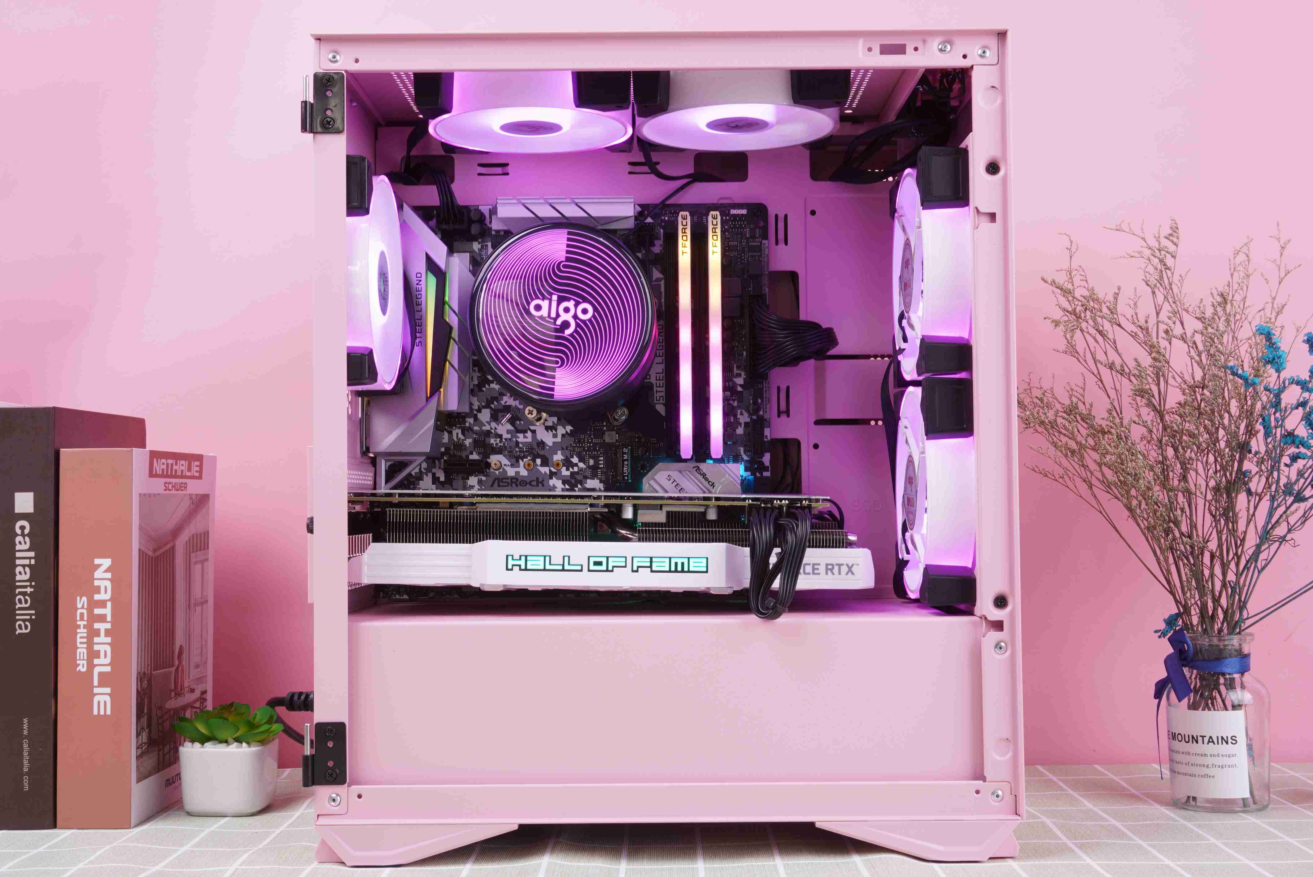 整机完成后的效果,粉色机箱真的是再也适合不过了。