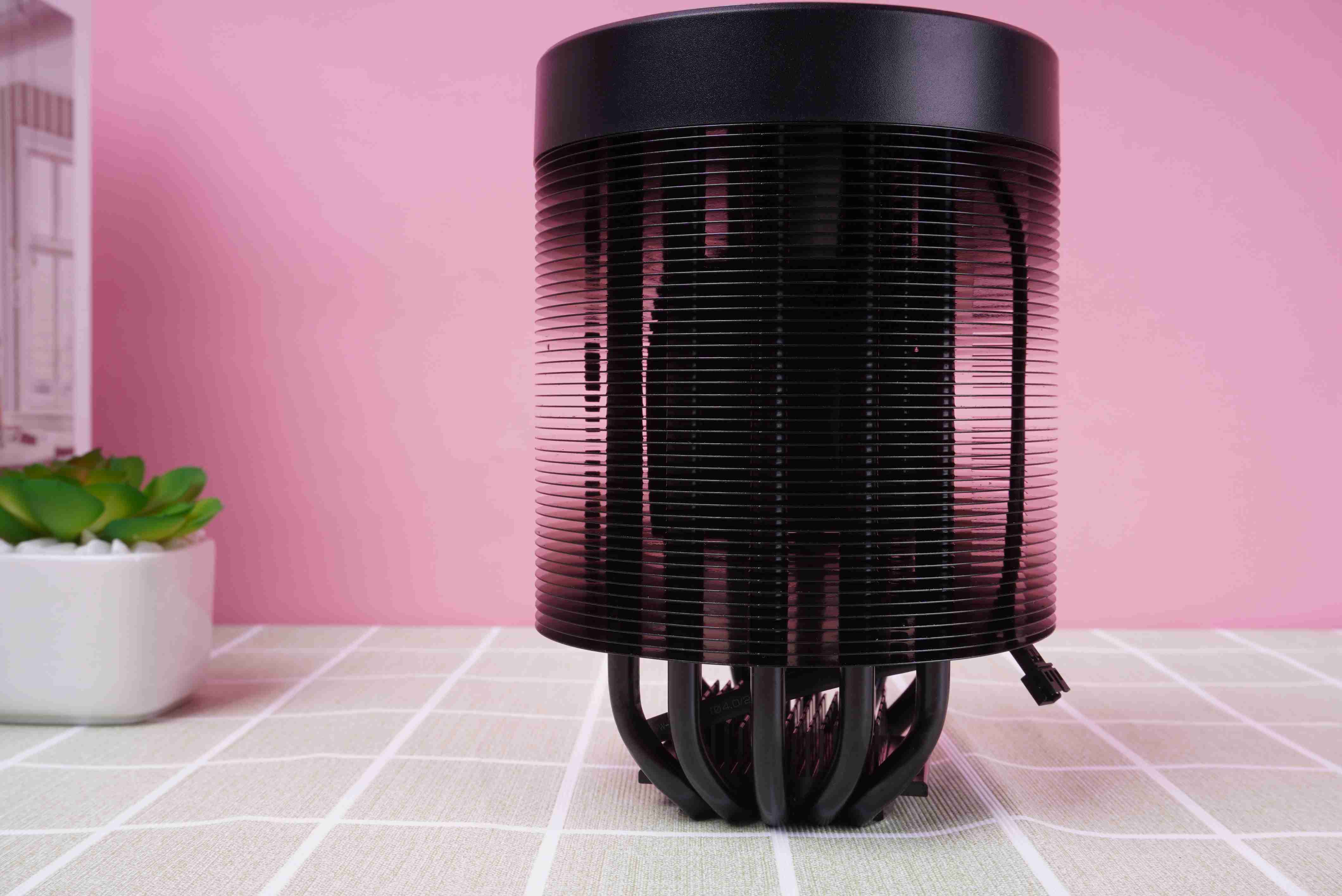 这款散热器的设计还是非常新颖的,采用了圆柱形设计。