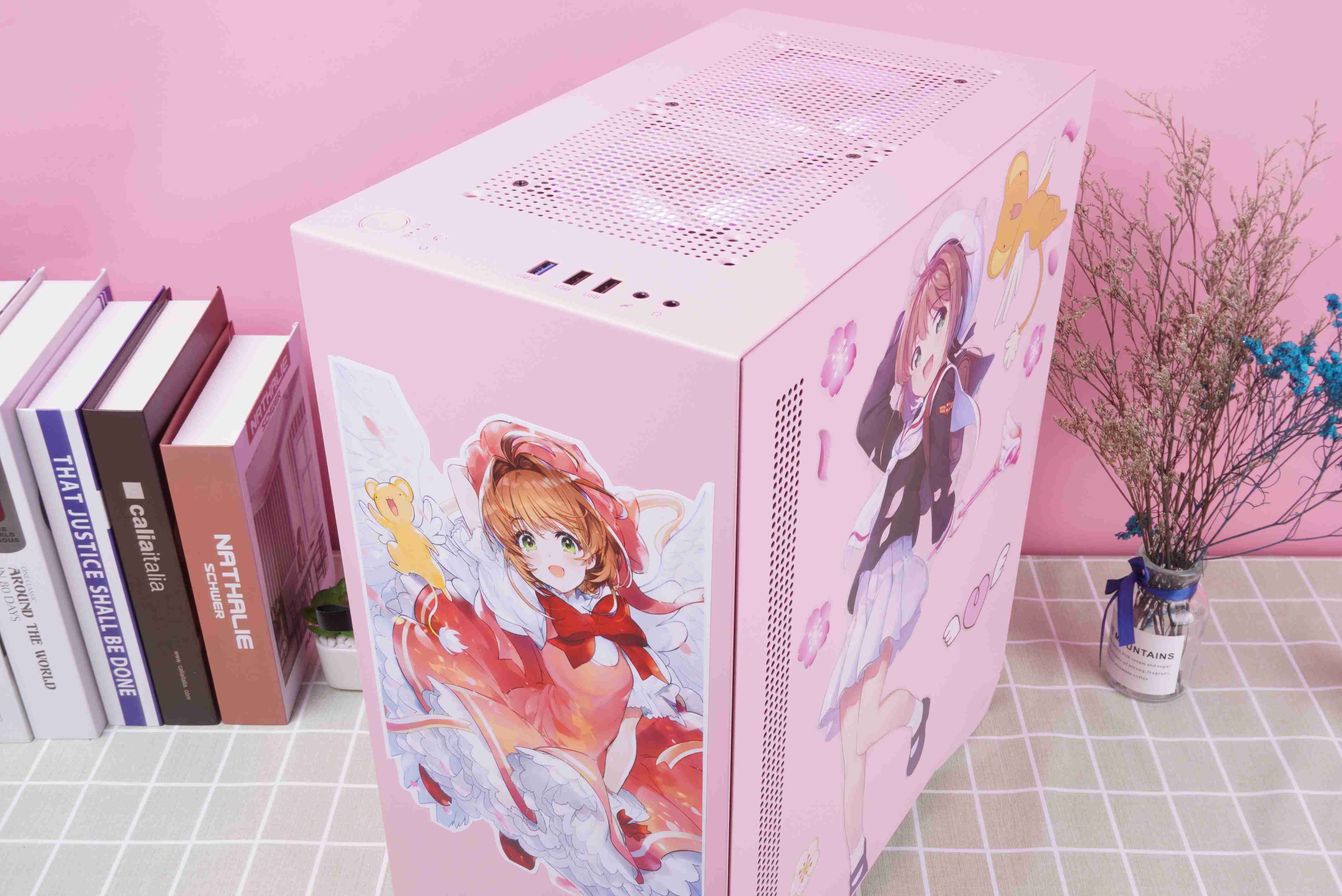 在今时今日,电脑性能已经足够强大了,因此越来越多的玩家开始把更多的预算放进到机箱外形的上。我作为“猛男”中的一员,在解决了主机的性能后也要为自己的机箱搞搞变身了,这次我要把我的主机变身成“魔卡少女樱”!先来看看我的成果吧。