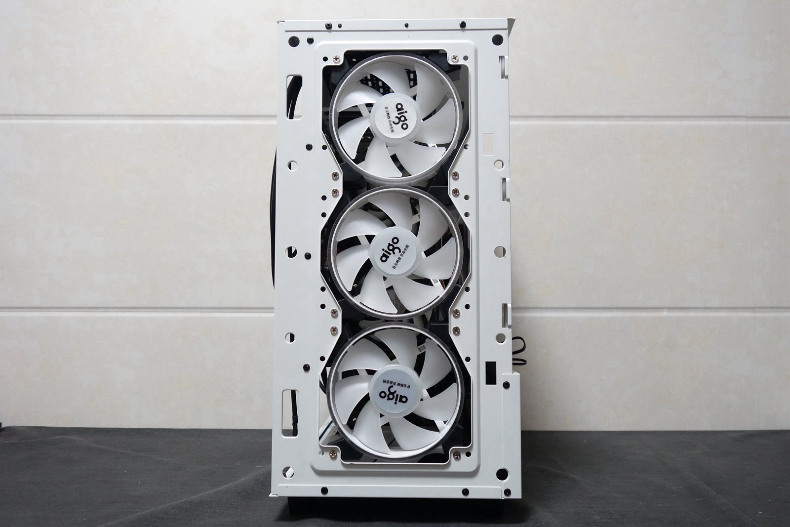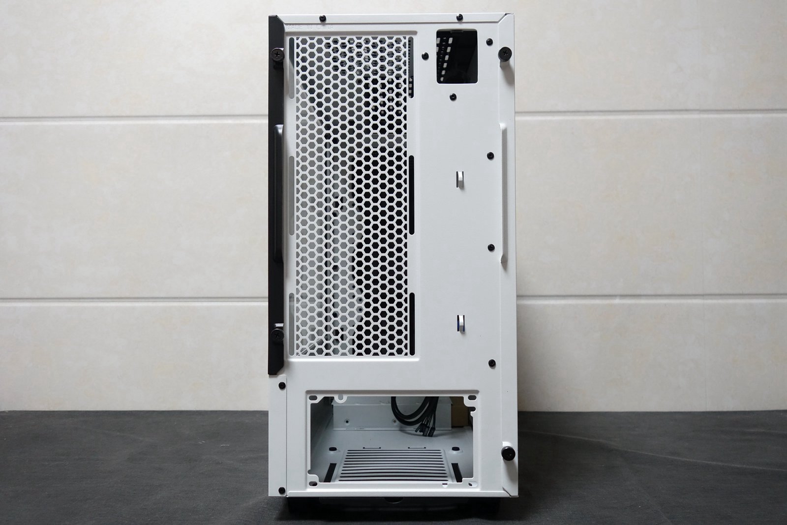 机箱的后置面板可以支持两把12cm风扇或者120/240水冷安装。