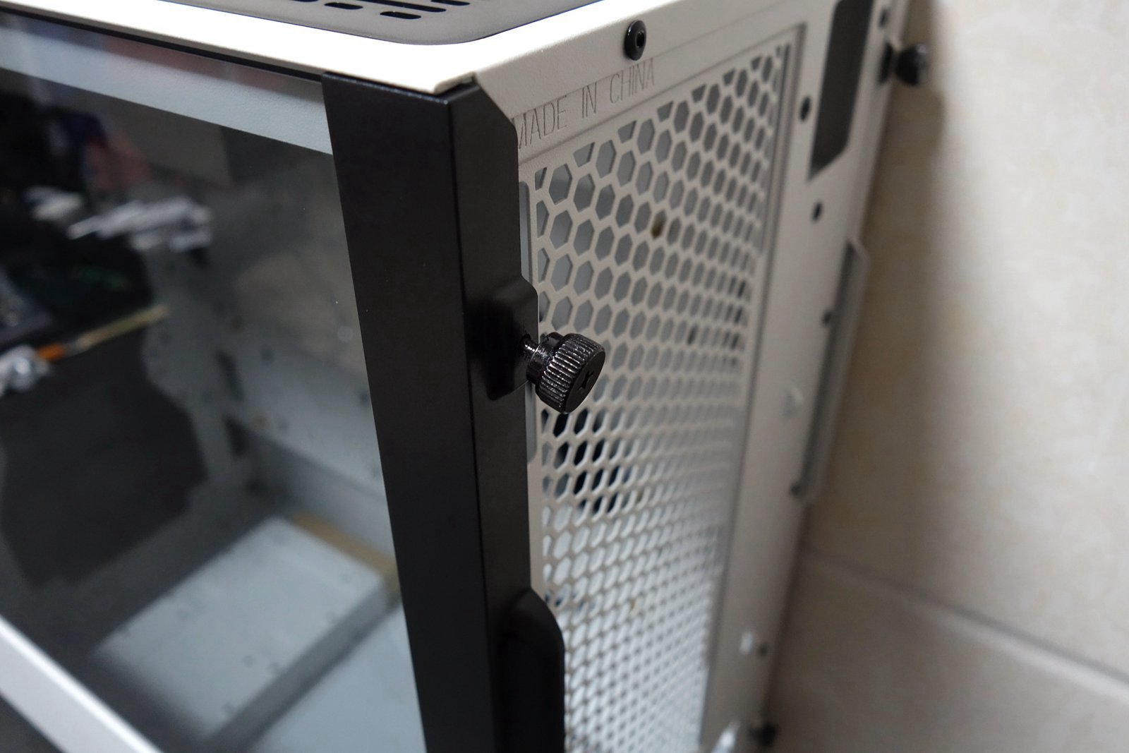 和普通的钢化玻璃侧板不同,爱国者破晓X的侧板使用了推拉式的拆装方式,而且钢化玻璃两边均带有钢板加固,拆装的时候很方便。