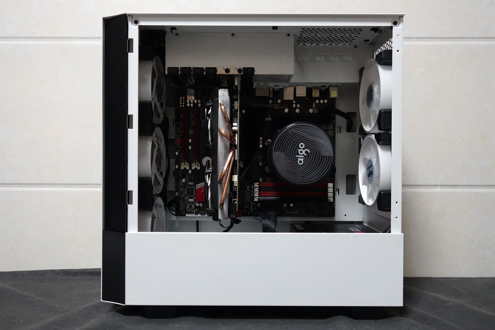 虽然爱国者破晓X的外观设计十分简约,但是它的使用体验确实是不简单,首先它有着主板90度旋转的设计,安装方式非常独特,同时竖直的显卡安装方式可以很好解决PCB弯曲的问题。而在散热方面,完全前进后出的风道、标配5个风扇位和支持最大240冷排可以满足各种不同配置的散热需求,表现还是很不错的。