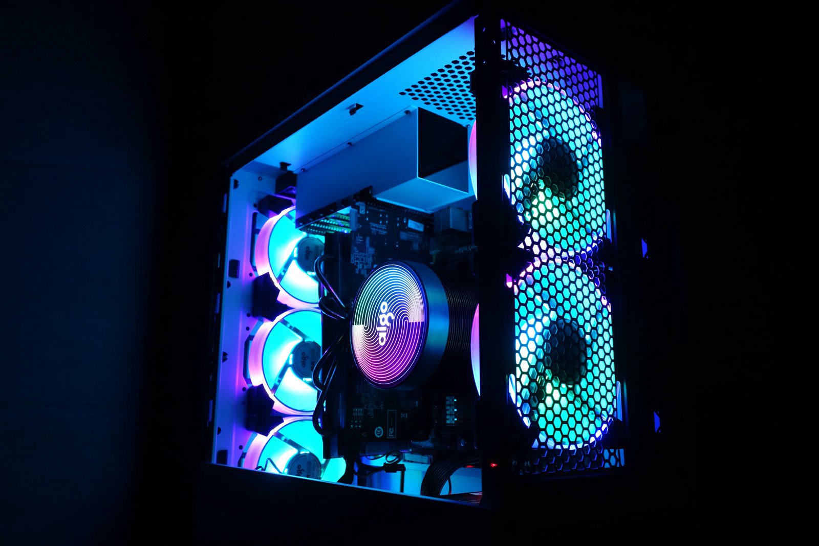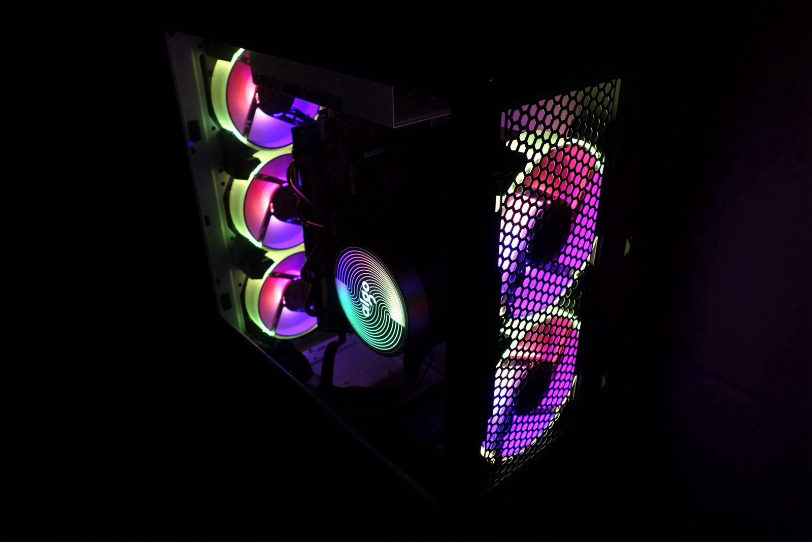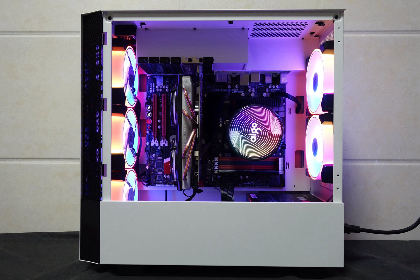 从实际的效果来看,爱国者破晓X的装机效果还是很酷的,简约的外观、90度旋转的主板安装、竖立的显卡、满配的RGB风扇和散热器,这些元素加起来的感觉让人耳目一新。