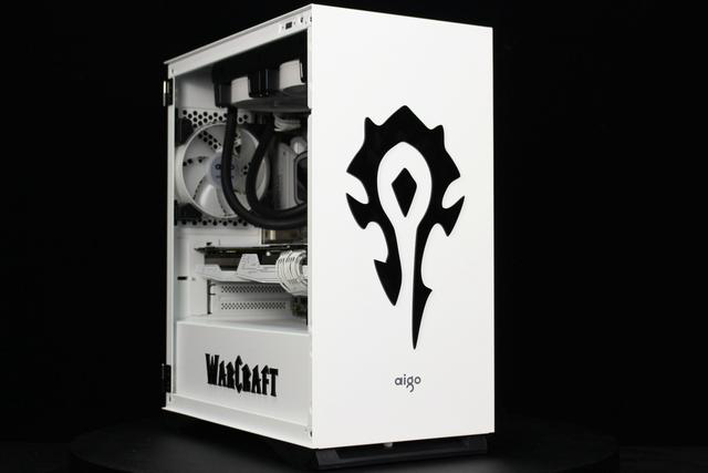 为了凸显魔兽世界的主题,我在机箱的前面板和电源仓上DIY了部落和魔兽世界WarCraft的LOGO。