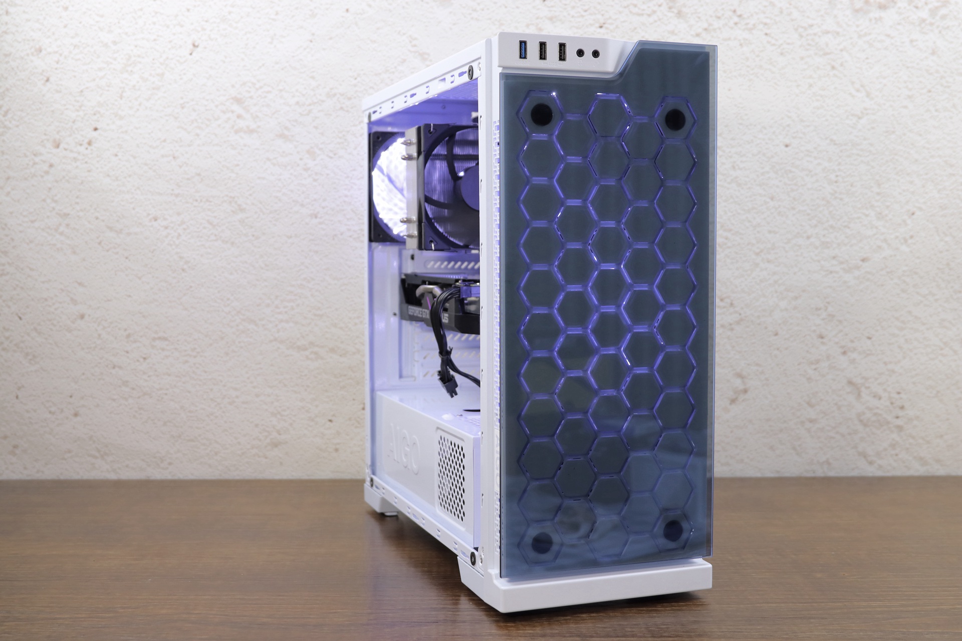 我喜欢的样子你都有,机箱的外形简约大气,放着很养眼,大家都蛮喜欢这种样子的设计,炫酷白又有种专业的高级感,正面是盛世美颜蜂窝钢化玻璃面板,侧面是中透亚克力面板,整体视觉效果极富科技感,机箱的用料很足,材料扎实有质感