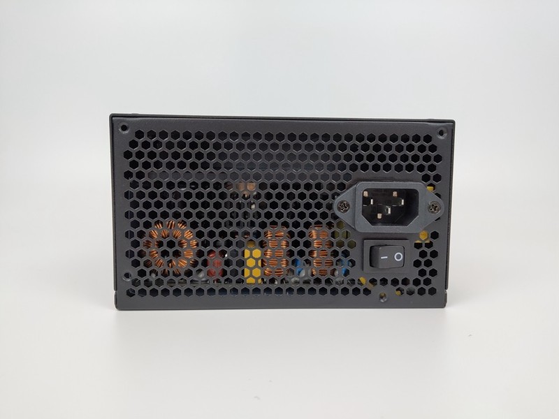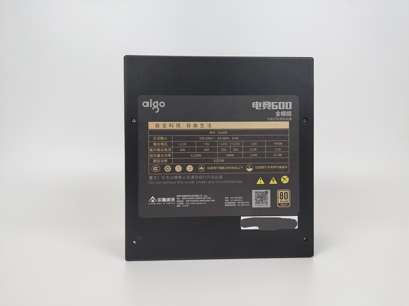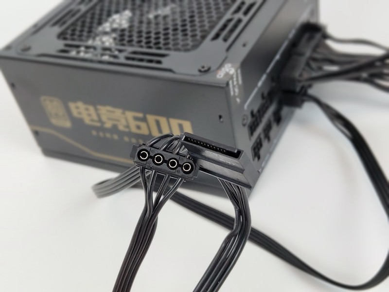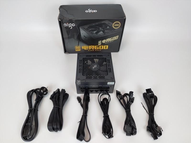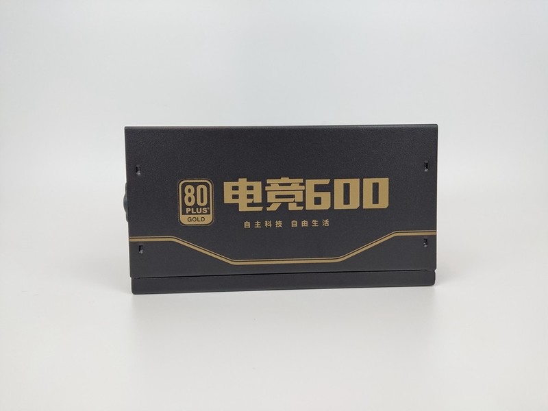 电源是爱国者的电竞600模组版,电竞600是一款额定600W的金牌全模组电源,采用主动式PFC+半桥谐振+DC2DC设计,通过了80 PLUS金牌认证,全扁平模组线材,走线很友好。