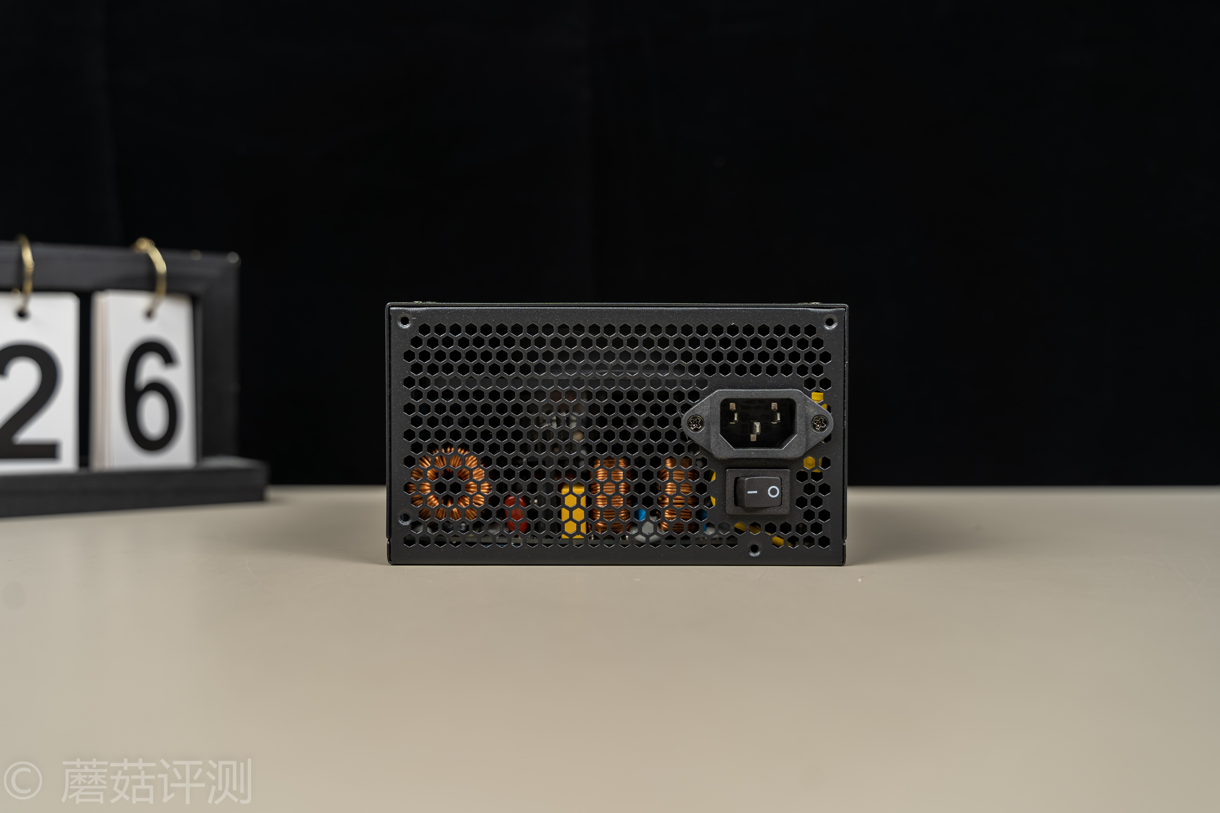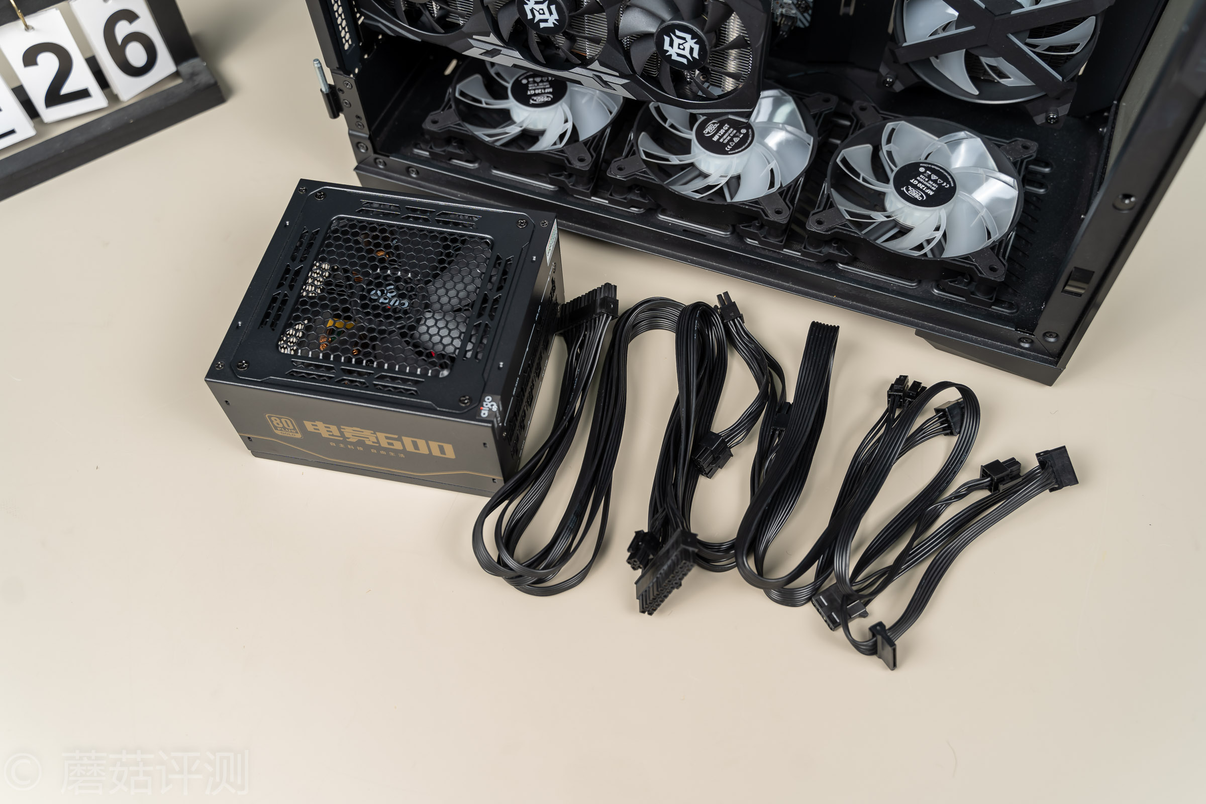 ▼电源的外观很漂亮,侧面印着电竞600的字样,左上角有80Plus的金牌认证。