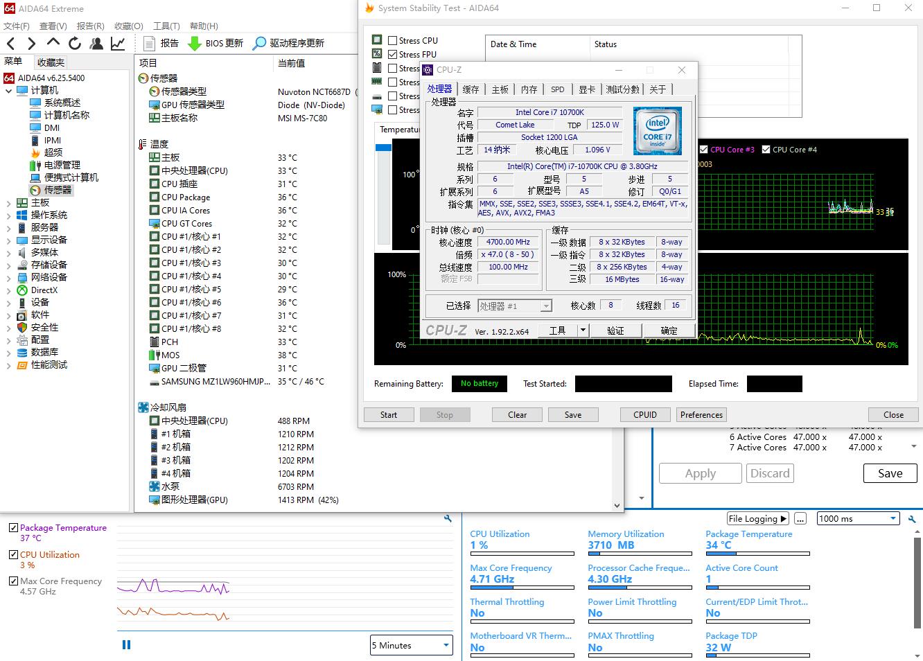 ▼继续讲10700K超频至全核心4.9G,单烤FPU,处理器功耗232W。