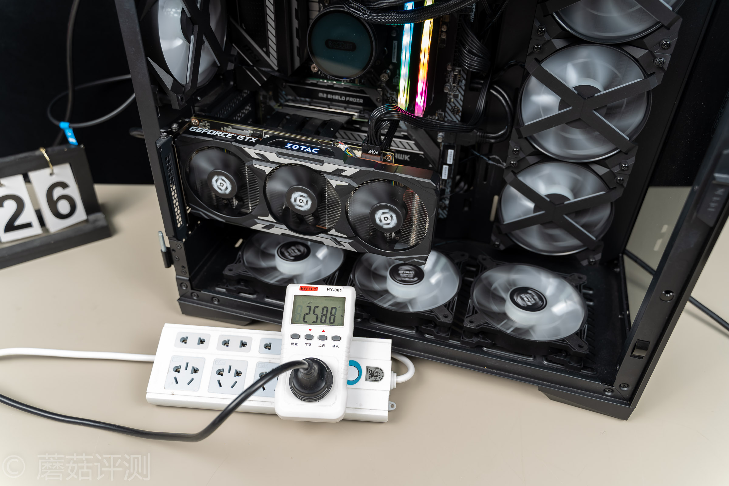 ▼关闭整机的灯效之后,待机功耗变成了80W左右,灯效部分的功耗在15W左右。