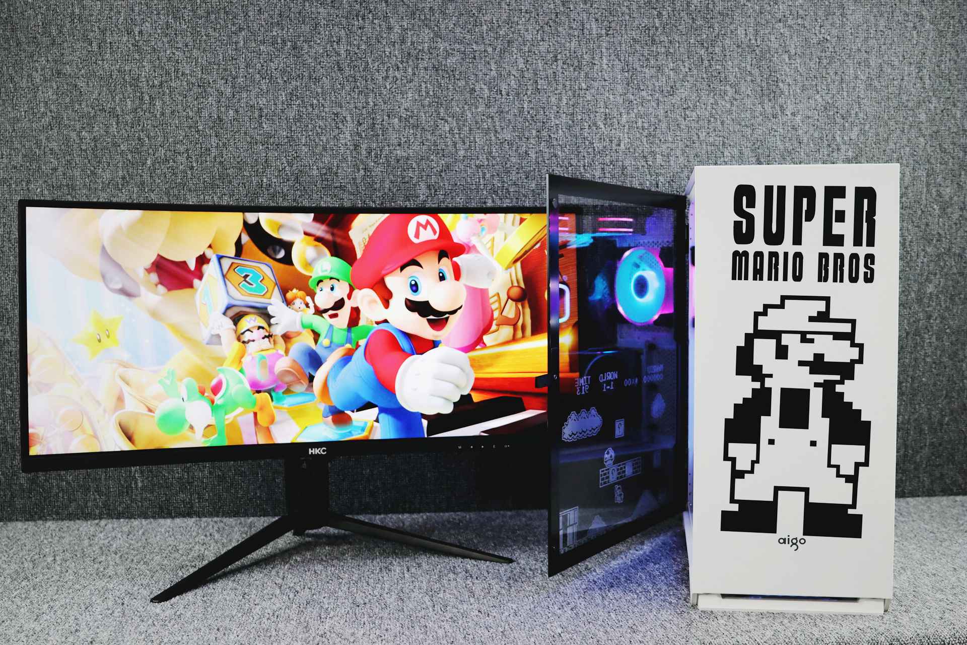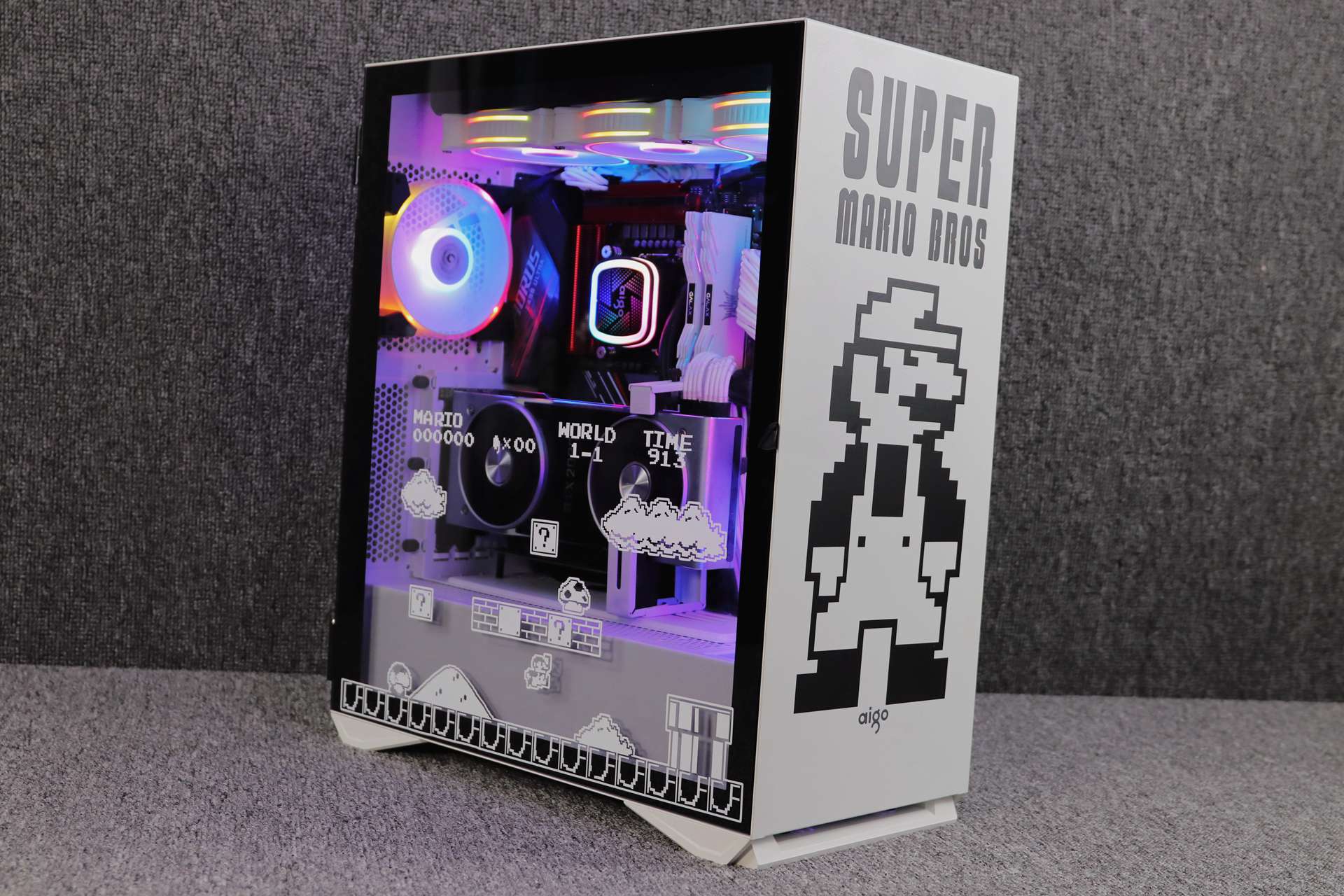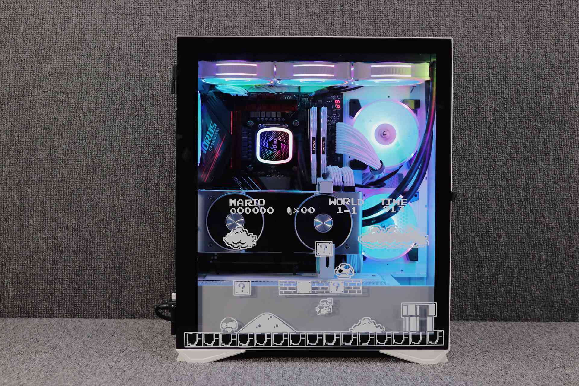 玩过红白机超级玛丽的朋友都知道,侧板上的这个是游戏中第一关的场景,同时也是许多人童年回忆中的经典场景。所以在这次主题DIY中,钢化玻璃侧板上的场景图案算得上是一大亮点。