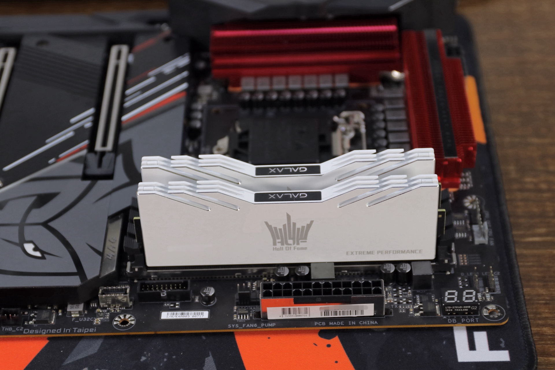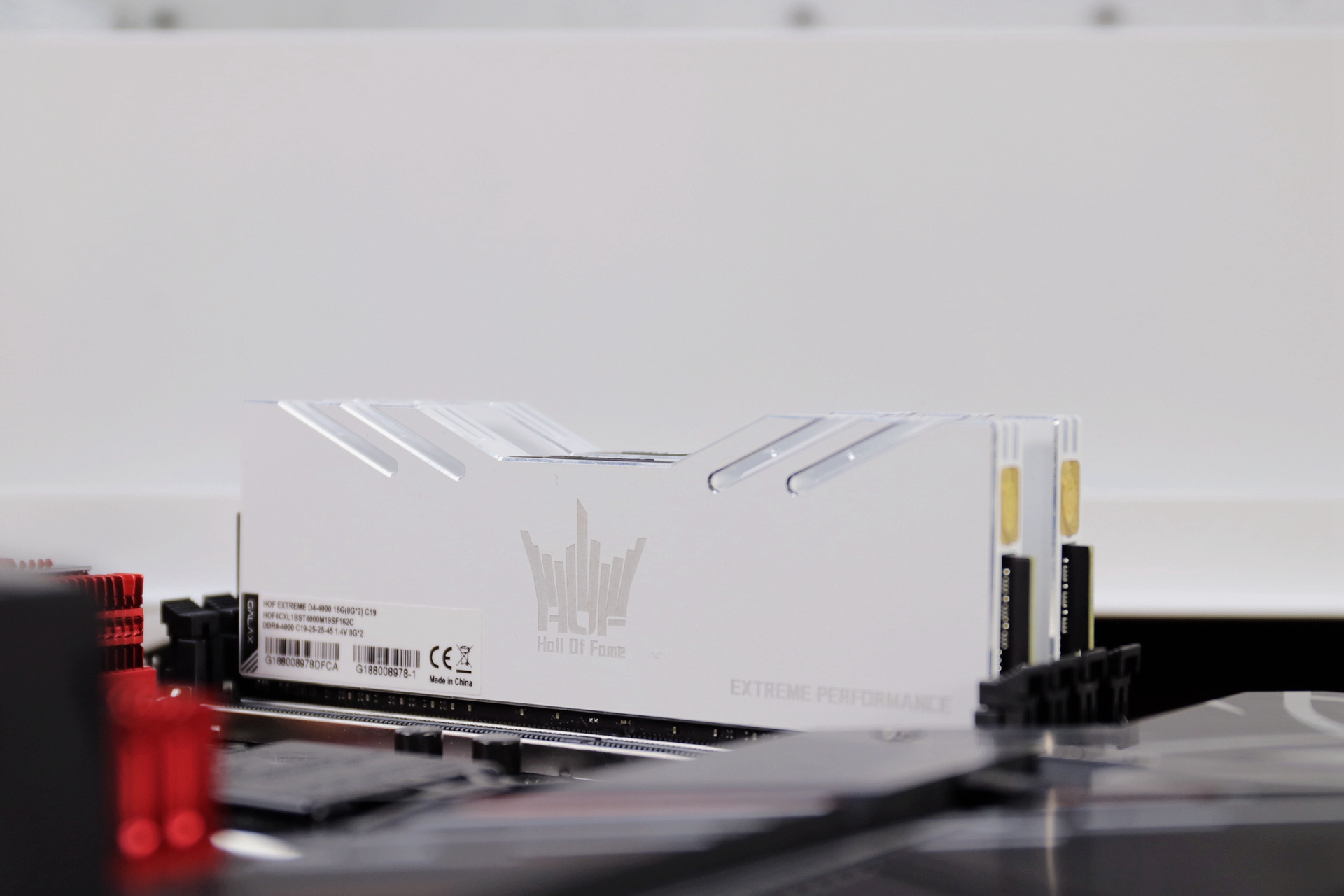 技嘉Z490 AORUS ULTRA G2限量版提供了4根双通道DDR4内存插槽,最高支持DDR4 XMP 5000MHz,高达128G的运行内存另外,插槽采用了合金装甲保护固定。所以这次使用的内存是采用了三星特挑的B-DIE颗粒影驰名人堂HOF EXTREME DDR4 4000 8g*2来作为这套主机的内存。