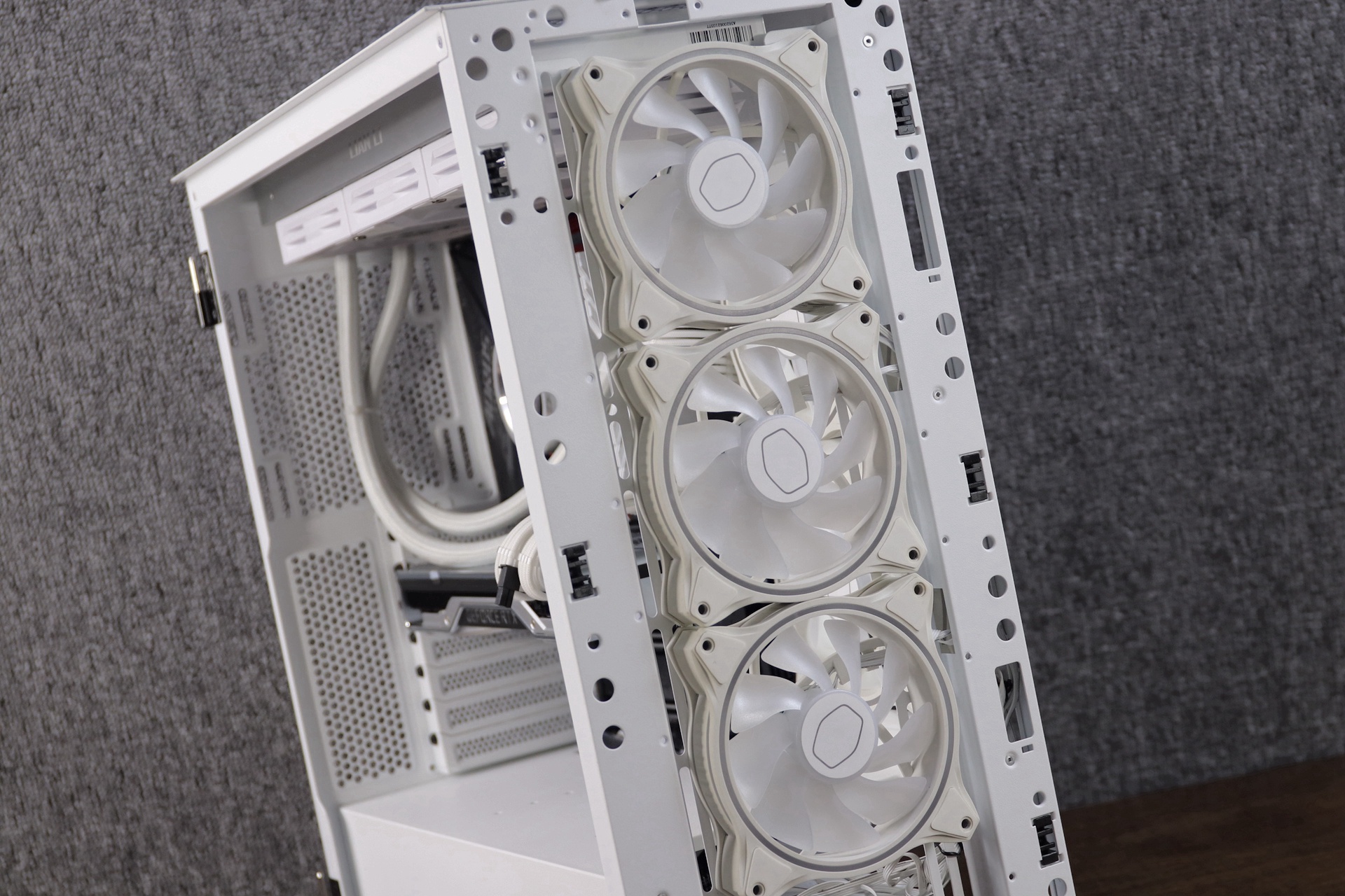在散热设计部分,上置和前置支持双360冷排的设计,从这点可以看出来这款机箱是完全可以支持大型高端配置的安装,箱体内部右侧是可以支持240mm的冷排和风扇安装,整个箱体最多可以支持9个120mm散热风扇安装的。这么豪华的散热布局再加上双翼侧开面板,基本可以无需担心整个箱体的散热了。