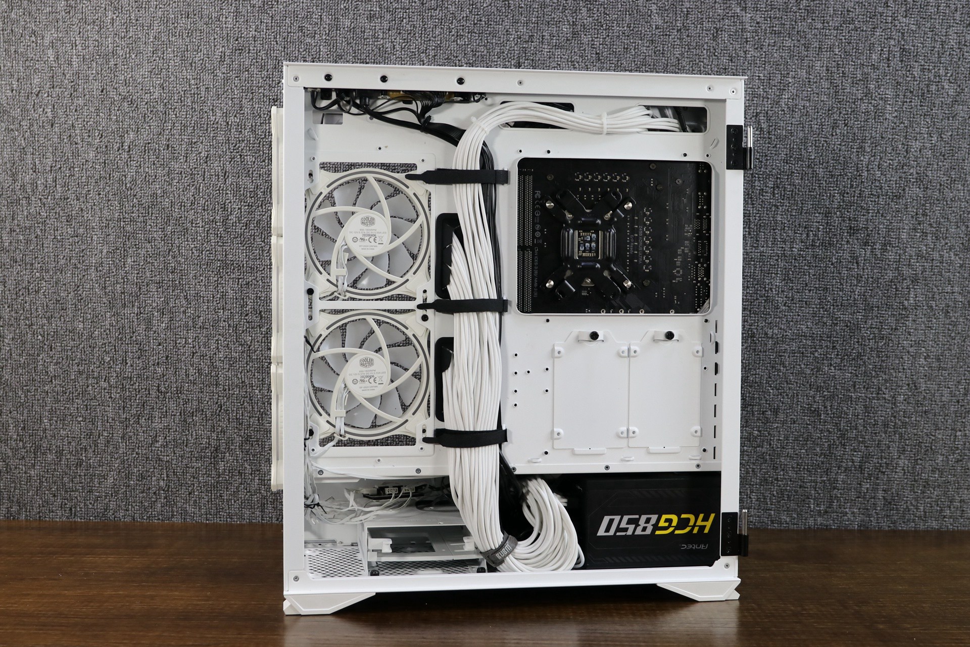 略过繁琐的装机步骤,直接来看下装好整套配置之后的主机。正面和背面都非常的清爽。这也得益于这次选择的硬件搭配的互补。
