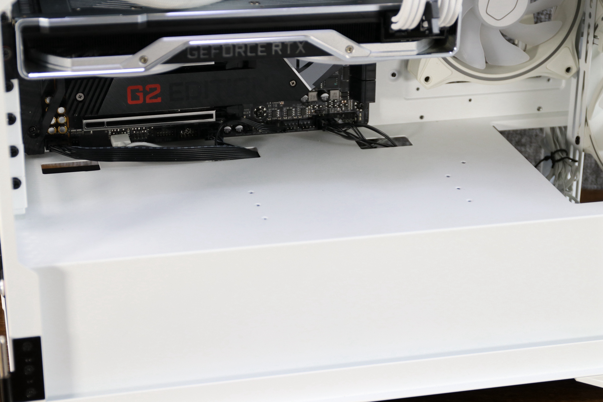 这款机箱的PCI显卡槽采用无隔栏设计,这样对于厚度为2.7甚至是3槽的30系非公显卡来说确实是个不错的设计,虽然这次装机使用的是原来的RTX2080显卡,但是为了即将升级的30显卡做准备。在显卡安装方面,可以选择使用竖装和延长线来完成显卡竖装,亦可支持显卡横装。