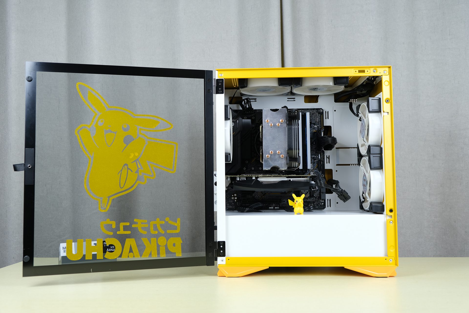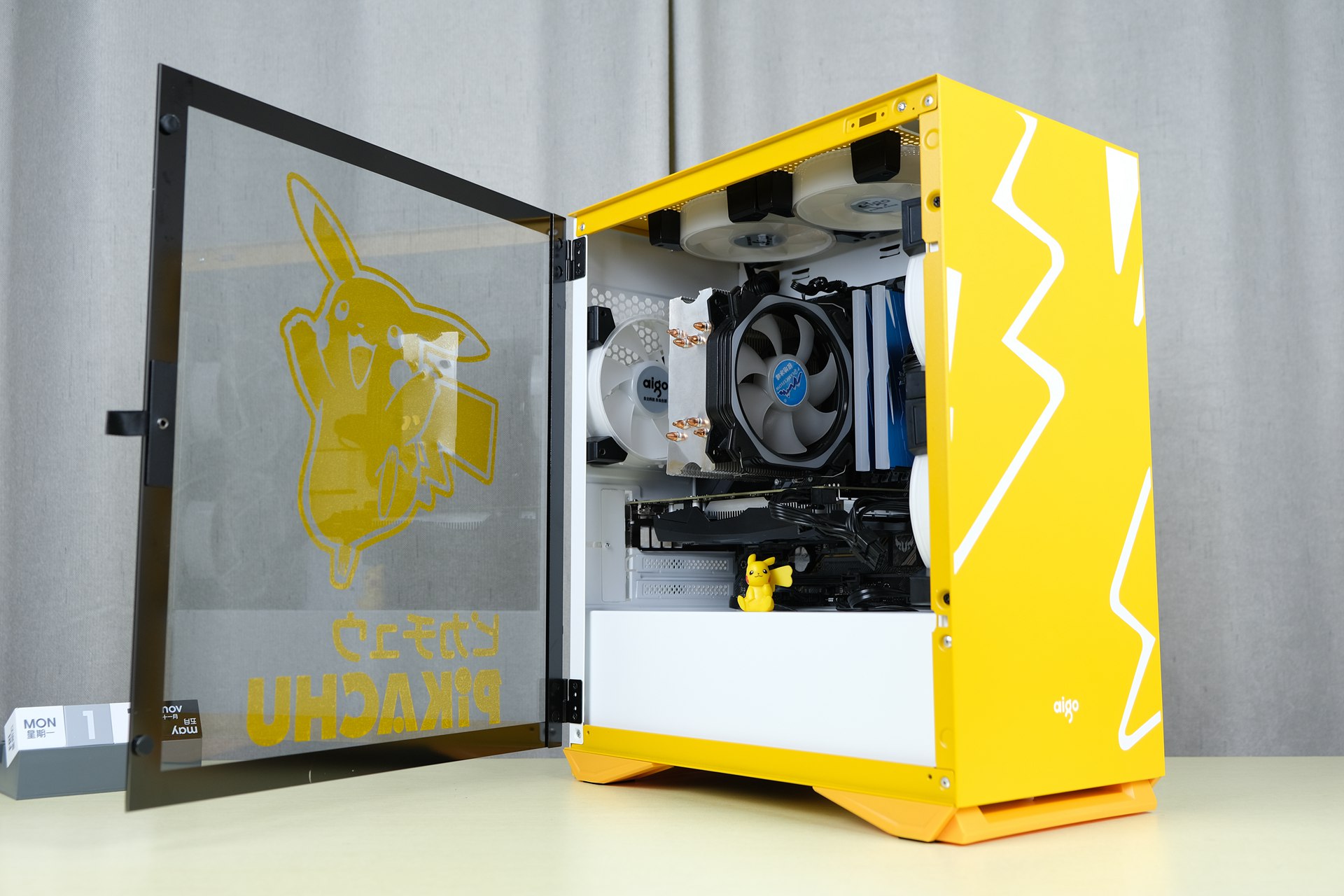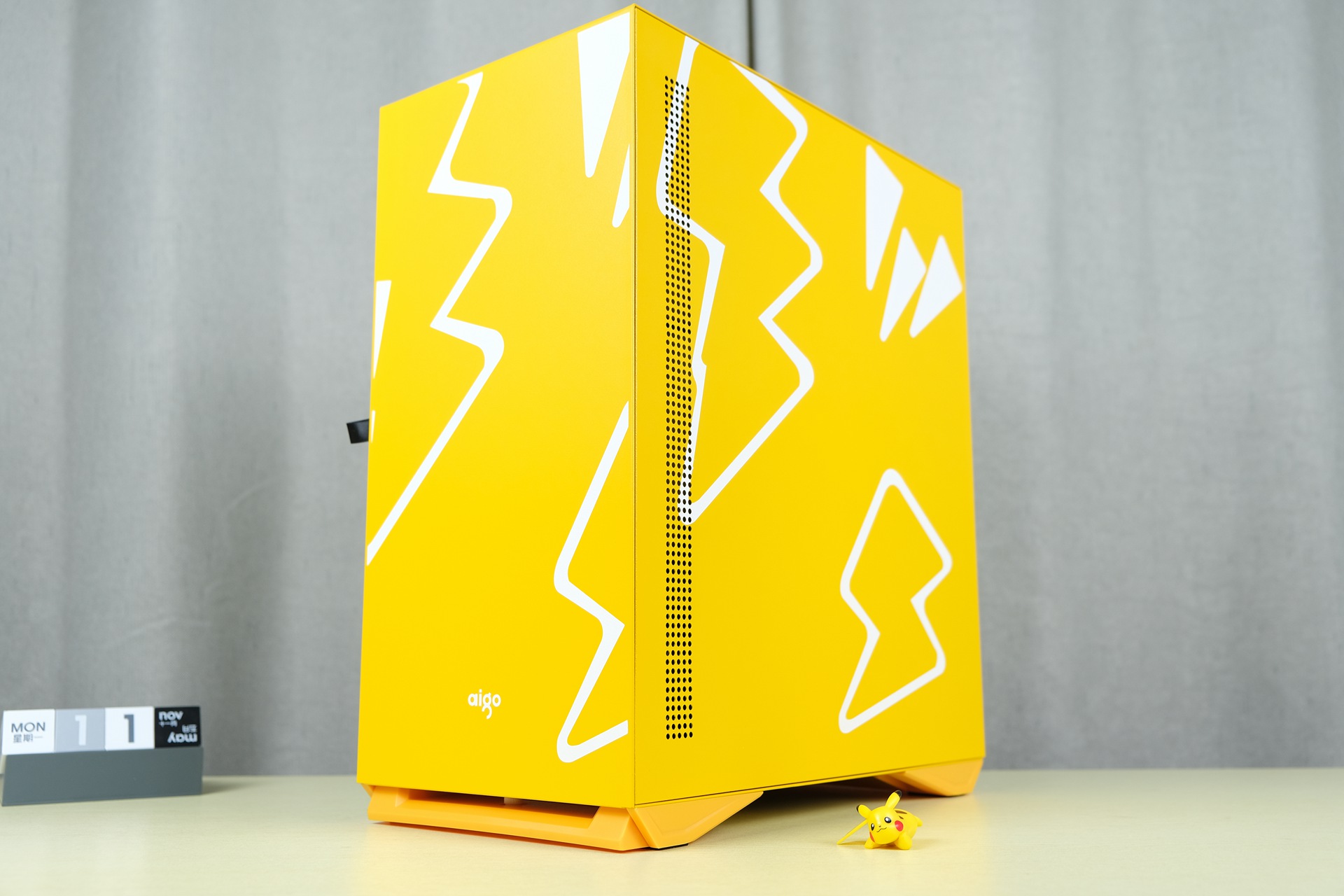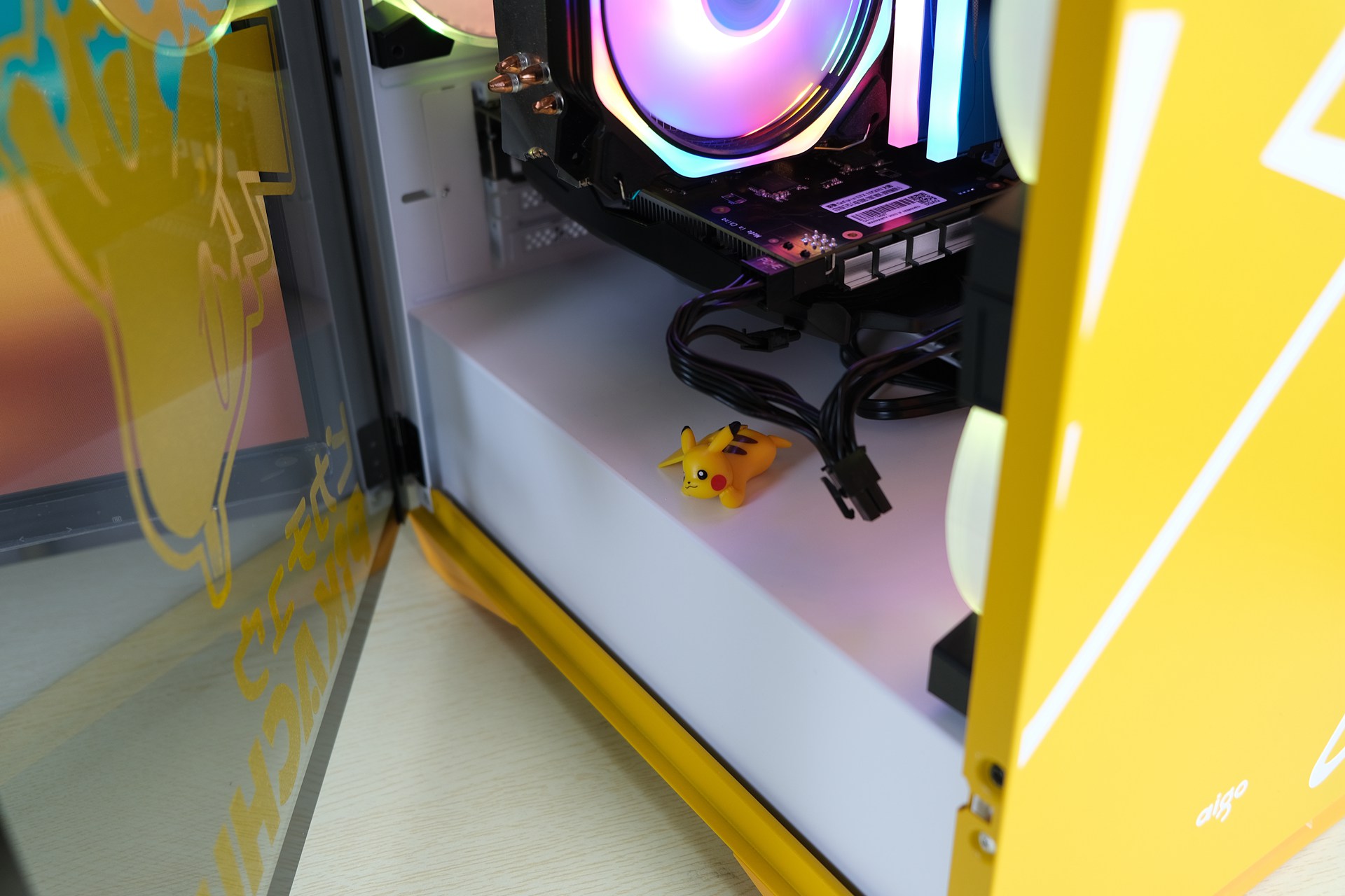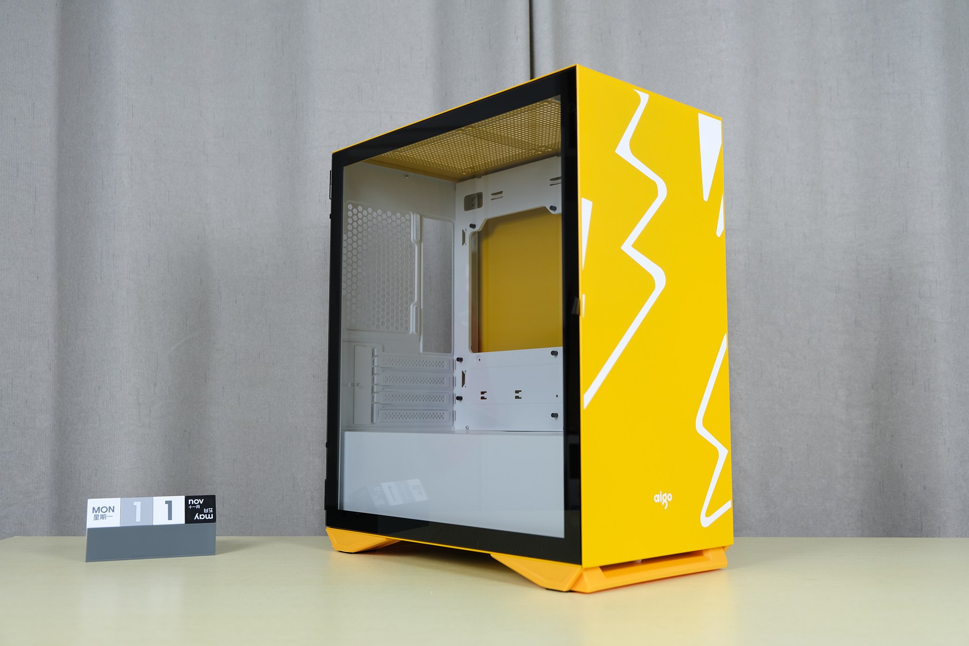 机箱原厂的橙白色调和闪电图案和皮卡丘相当适配,对于笔者这个手残党相当友好,不用进行大面积贴纸或者喷漆等等改动,动手能力强的大牛勿笑。整体橙白的色系搭配也使得主机活力十足,相当有朝气。