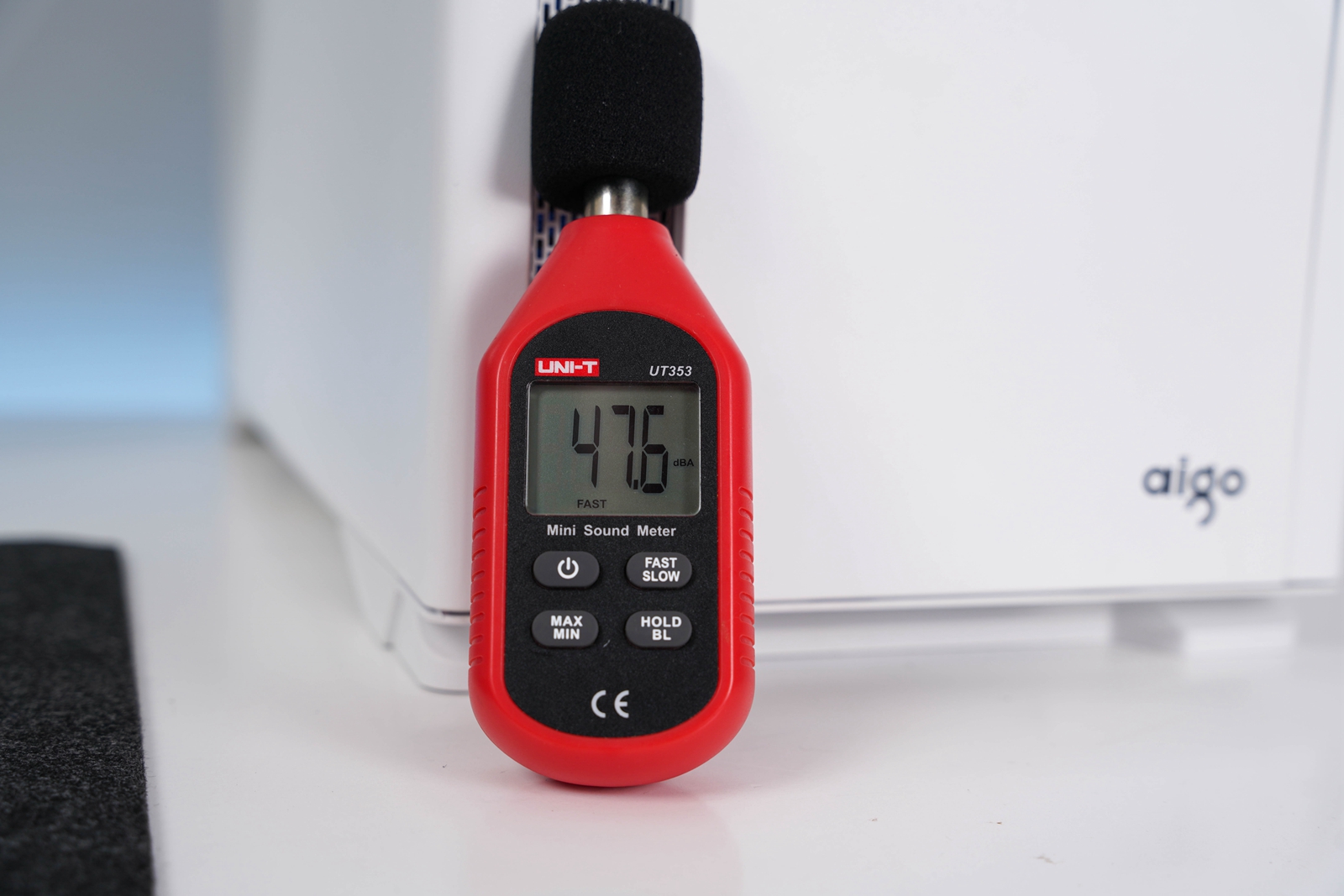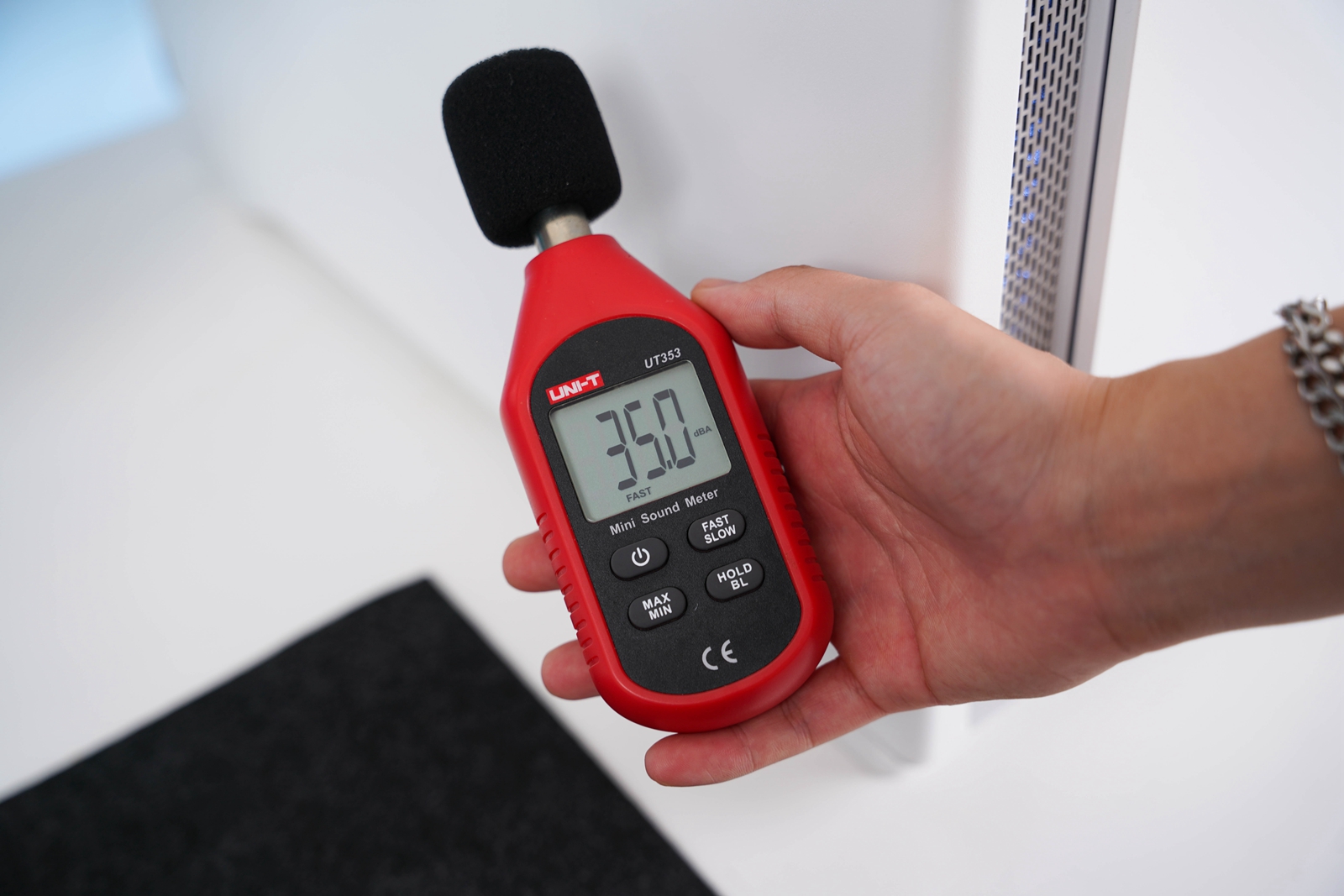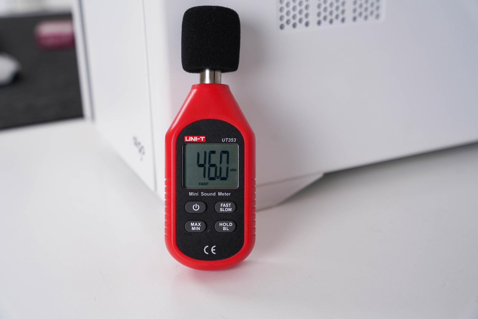 在满载负荷运行时,最接近使用者这面的左侧面板的环境噪音也只有仅仅的44.6db。