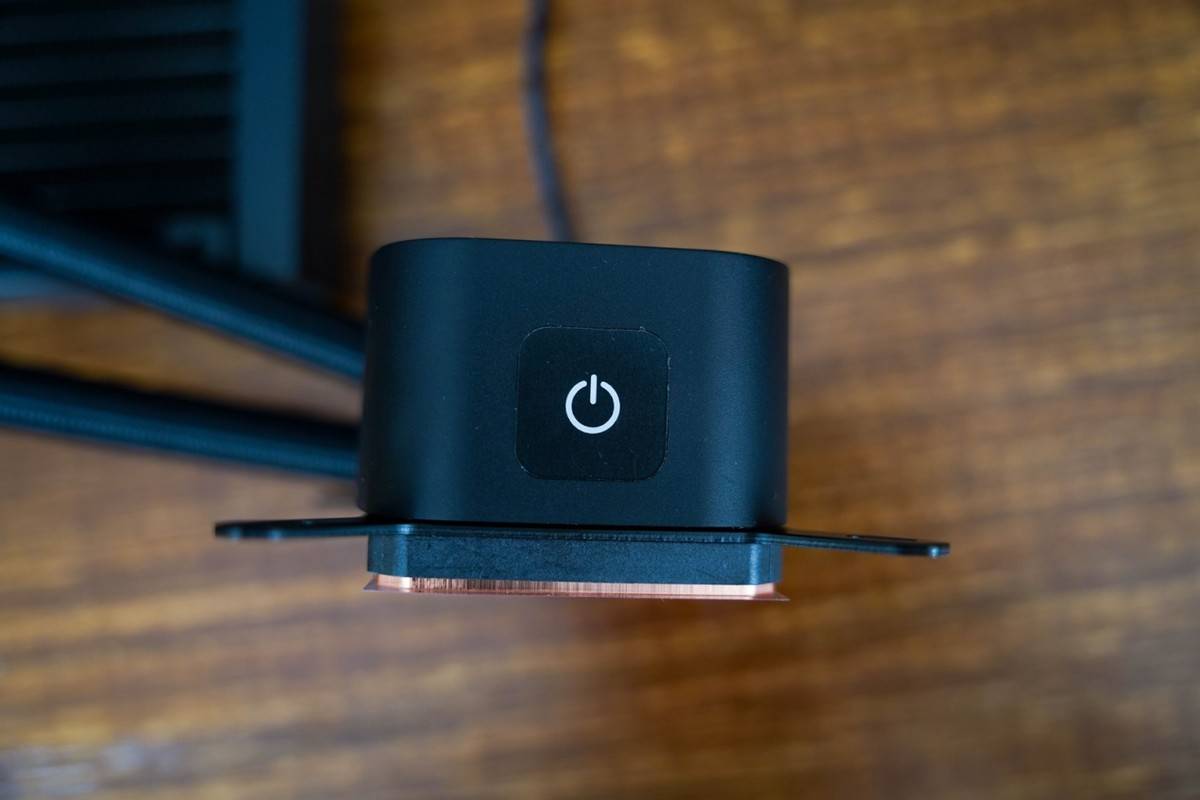 要是想切换成无光模式,冷头旁边设计了一个触摸开关,可以三挡调控冷头的灯光,这在其他水冷冷头设计上还是很少见到。
