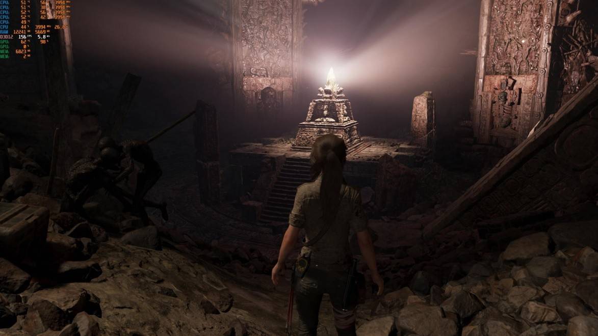再进入游戏实测,单机大作古墓丽影的2K全高特效下,开启DSLL高性能模式下帧数测试平均帧率维持在:128 FPS。温度表现:CPU各个核心维持在51℃,GPU温度维持在62℃。