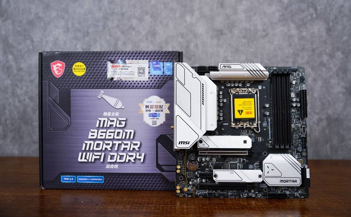 主板选择上,可以说自用的话可以考虑用料和做工还有功能和价格更高一点的B660主板,毕竟电脑产品也是用:一分钱一分货来衡量的。这次选择的主板是来自微星“炮弹兄弟”家族的MAG B660M MORTAR WIFI DDR4 迫击炮主板,千元内的价格拥有了不俗的用料,在M-ATX主板中算是“豪华”的存在。要是你只是单纯追求性价比和凑合用的话,可以选择更为低端的PRO B660M-G DDR4甚至是H系列主板都是可以的。