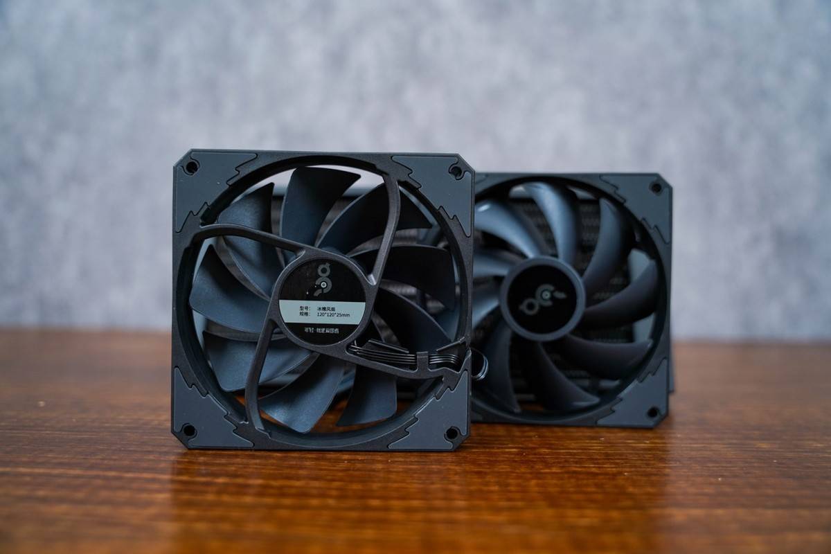 散热风扇采用2个无光的液压轴承的PWM风扇,风速600-2000转速,最大风量为81.5CFM。