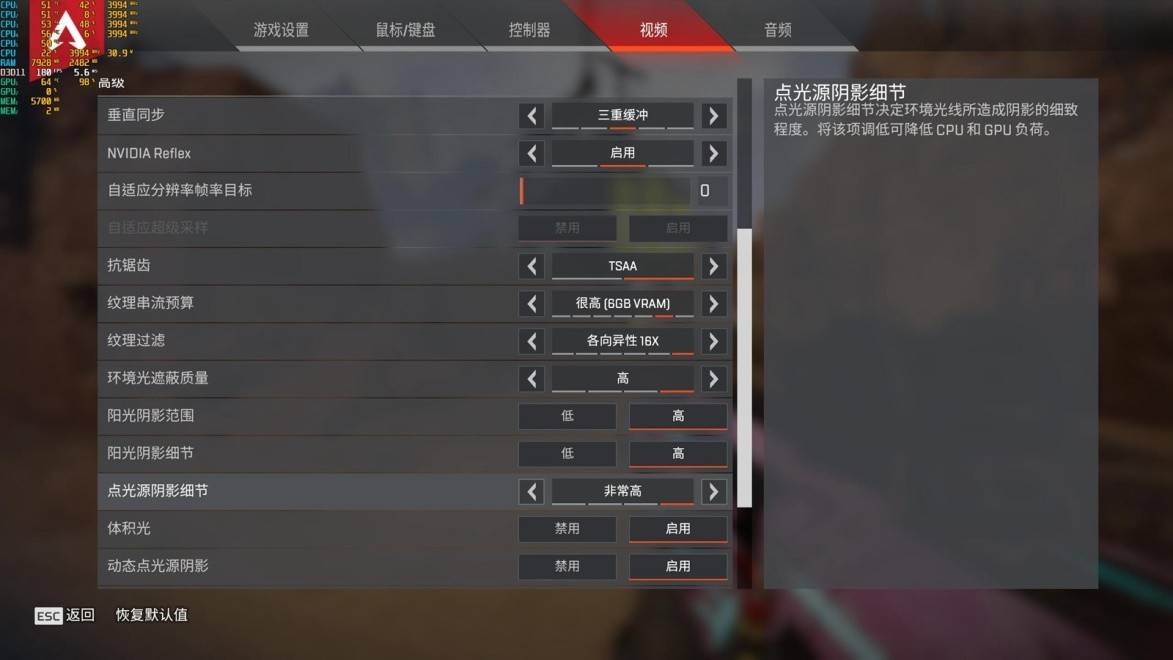 在常玩的一款主流FPS游戏---APEX的帧率可以维持在:185FPS。温度表现:CPU各个核心维持在52~54℃,GPU温度维持在66℃。