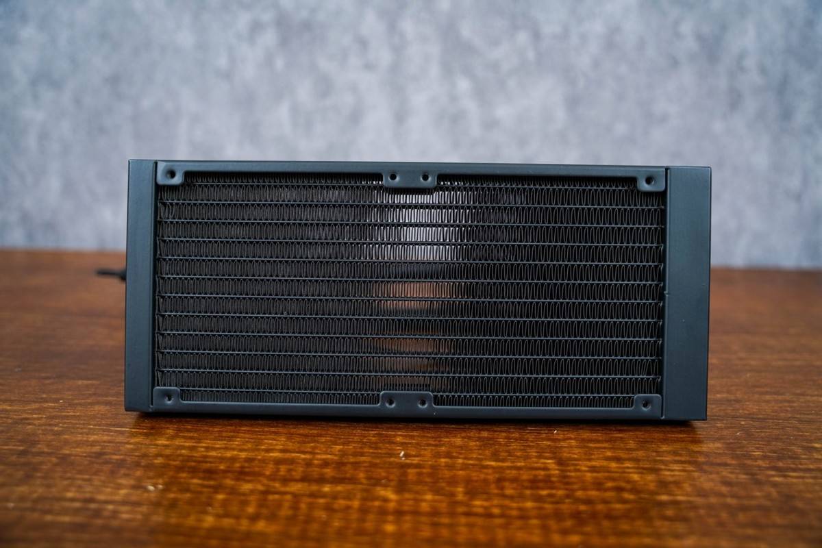 水冷的冷管长度为400MM,柔软度适中,长度也可以满足大部分机箱使用。冷排采用标准的低阻薄排(274*120*27MM),冷排加上散热风扇的高度为52MM。