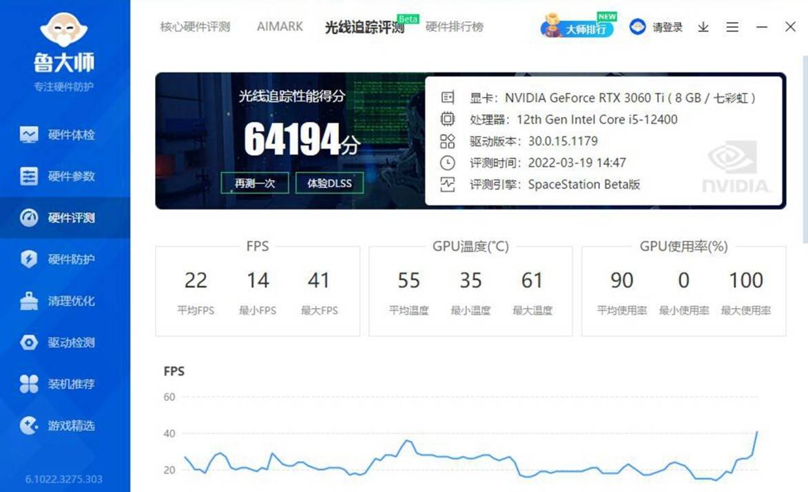 鲁大师和3D MARK测试的光追综合评测得分: